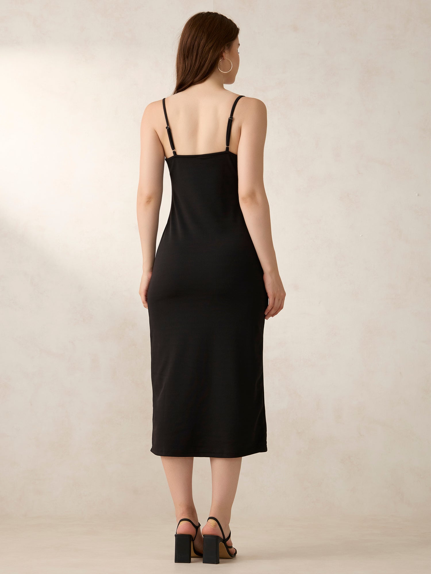 This isn’t your basic midi. With a subtle flare and a bodycon shape that brings the energy, it’s a match for last-minute invites and weekend escapes. Whether you're headed to a beach café or just running city errands in style, this one pulls it together. Its light movement and flattering neckline make it ideal for summer layering or one-and-done outfits. Ready to take up space in your vacation outfits lineup.