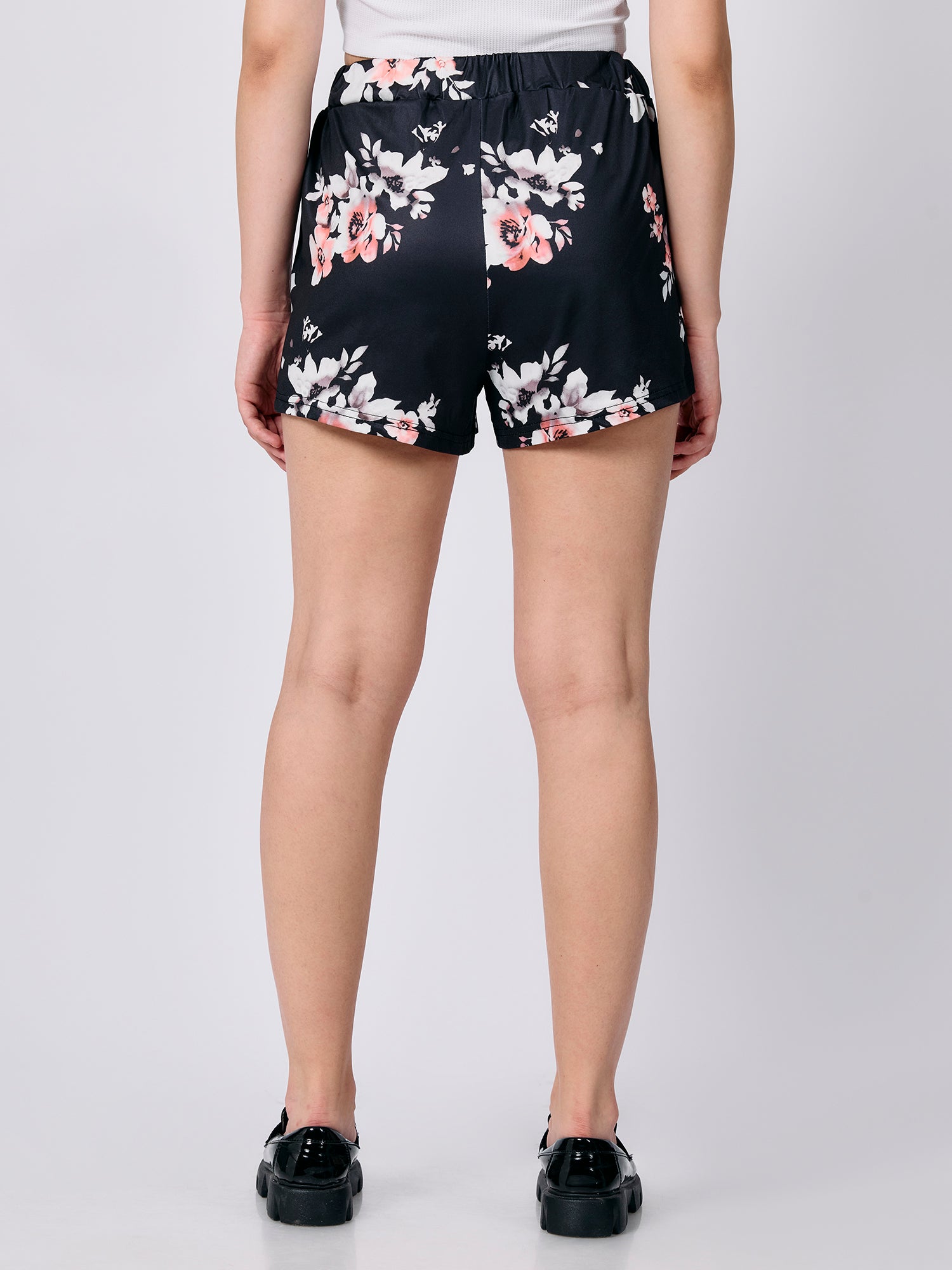 Black Floral Printed Shorts