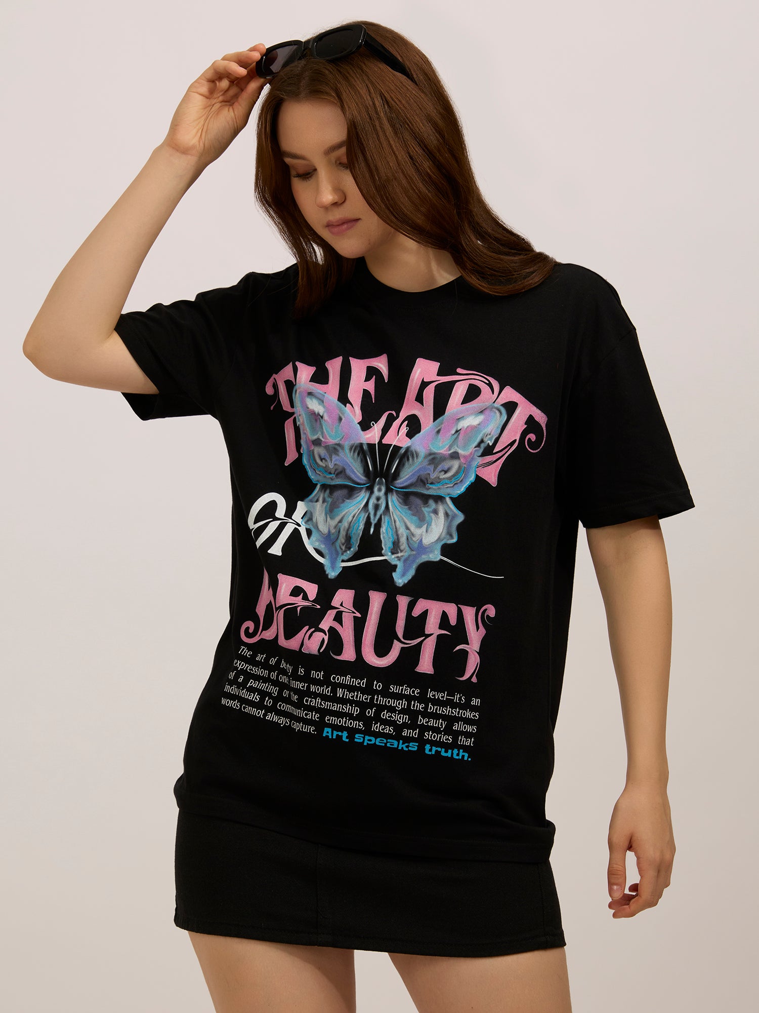 The Black Oversized Graphic T-Shirt is perfect for those on-the-go days that need a little style boost. Black adds that spark, while the casual wear shape keeps things minimal and versatile. A oversized fit that moves with you.