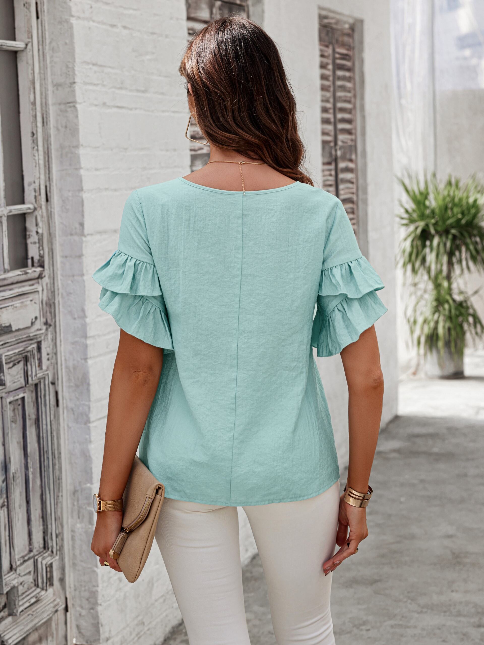 Make getting ready feel like a breeze with the Blue Ruffle Sleeve Knit Top. Perfect for vacay wear scenes and low-effort styling, it’s the kind of top you’ll keep coming back to. The design blends ease with a hint of edge,made for the girl who's always out the door. Get dressed, get out.
