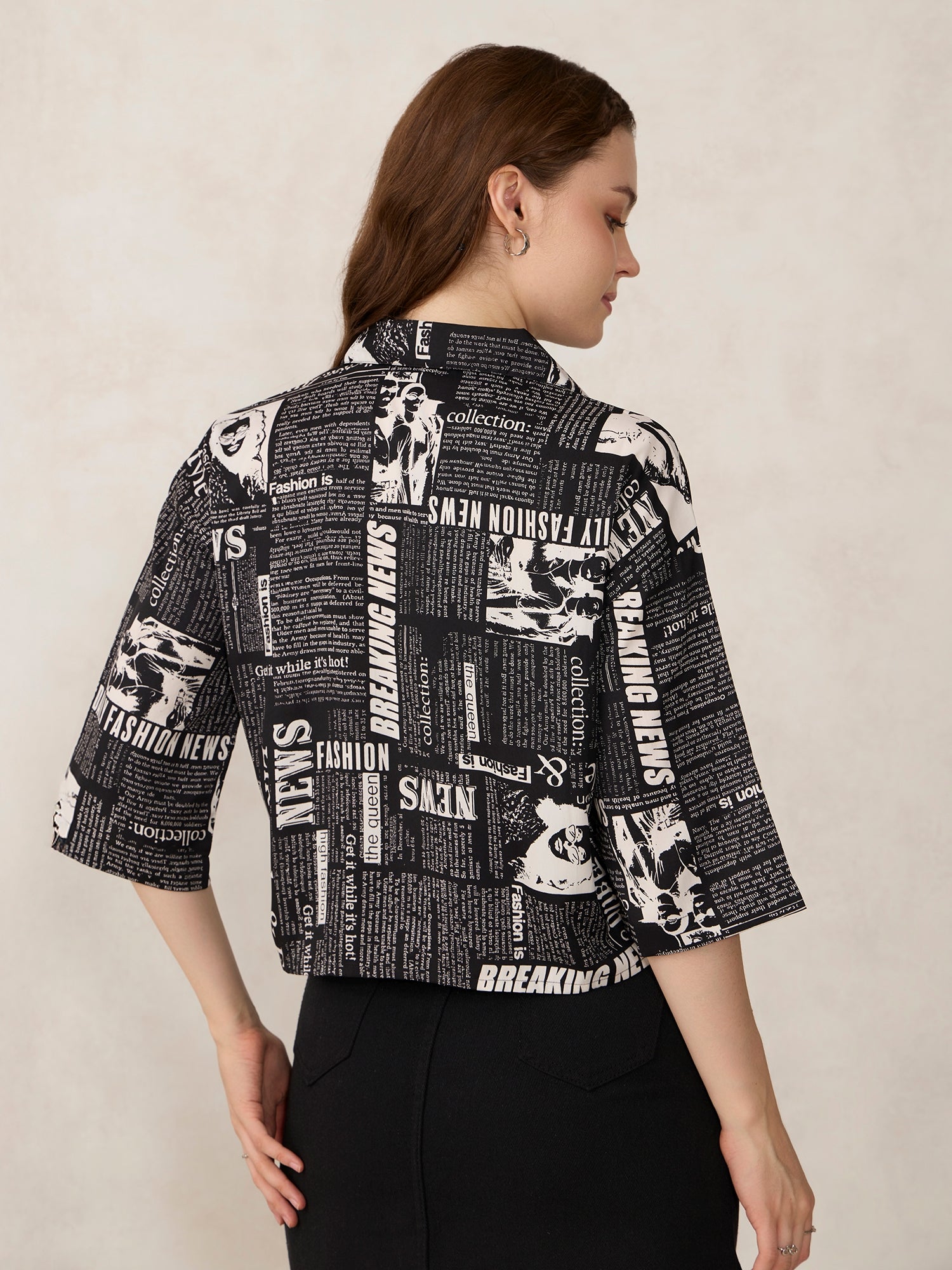 Black Paper Print Cropped Shirt