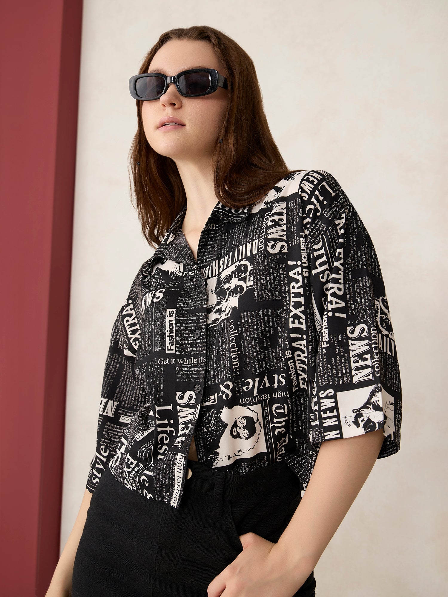 The Black Paper Print Cropped Shirt is what your outfit plans have been waiting for. Finished in black, this casual wear plays well with both your everyday denim and late-night layers. Its cropped fit keeps it flattering and functional.
