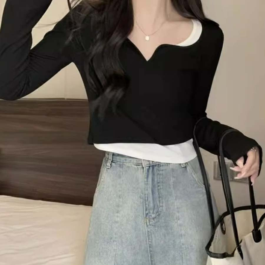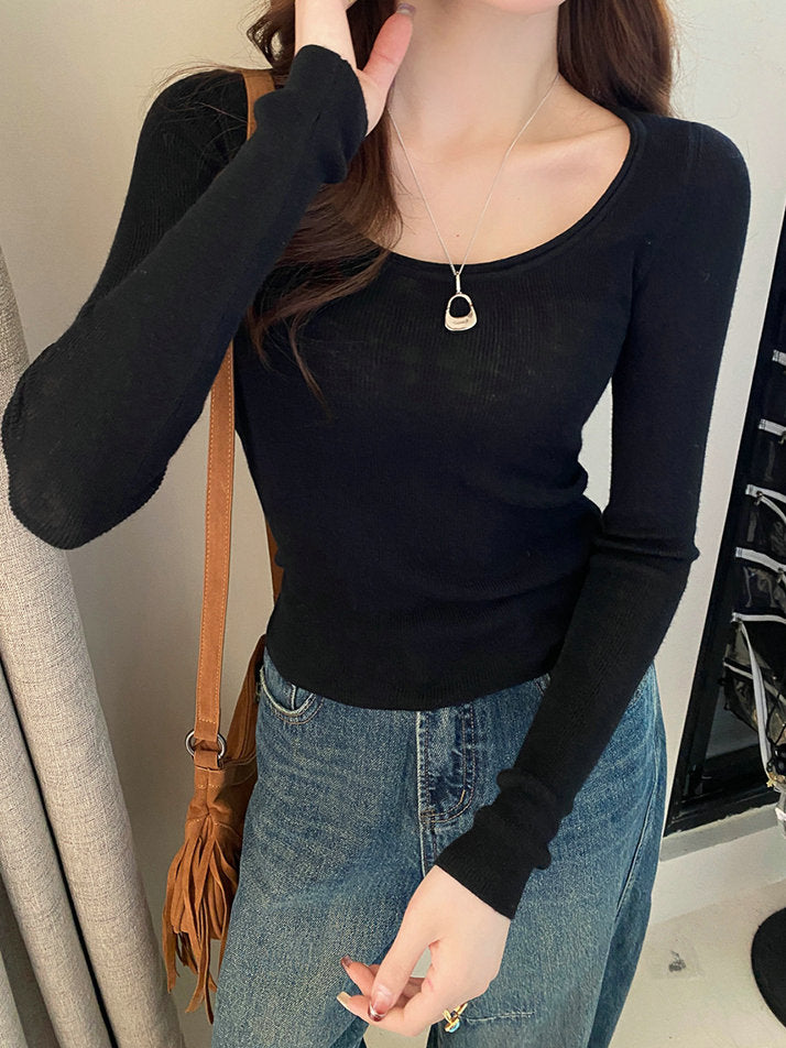 Black Solid Fitted Top
