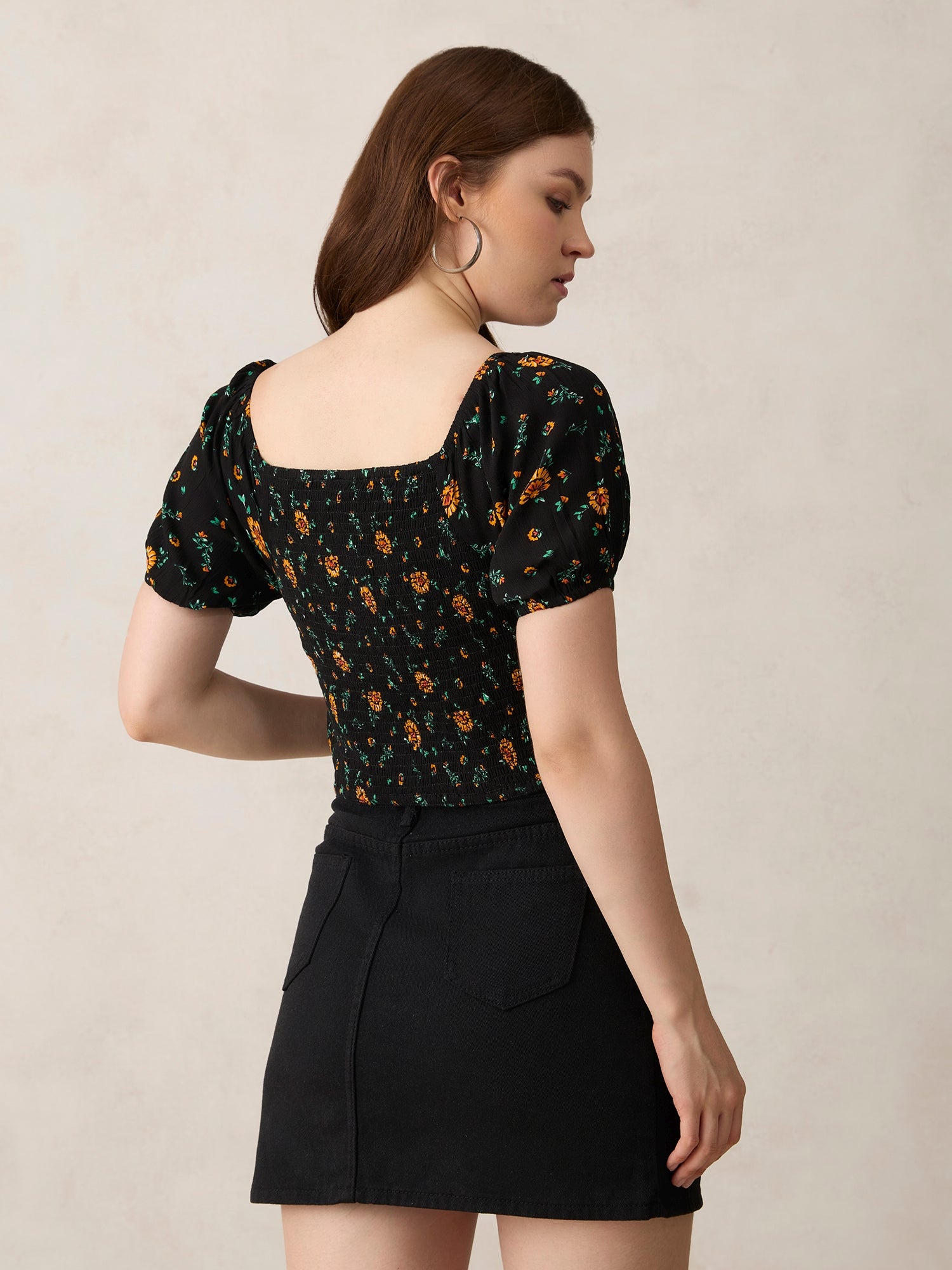 Black Fitted Top with Smocking Detail