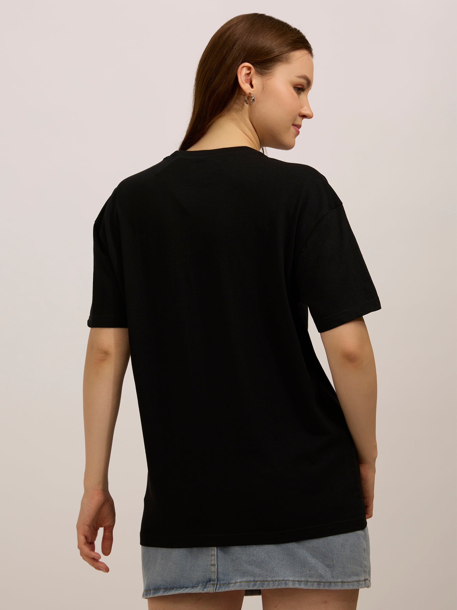 Own your outing in the Black Graphic Oversized T-Shirt. Black gives it attitude, and the casual wear format keeps it real and wearable. From casual brunches to late-night chill, this is how Gen Z does going out.