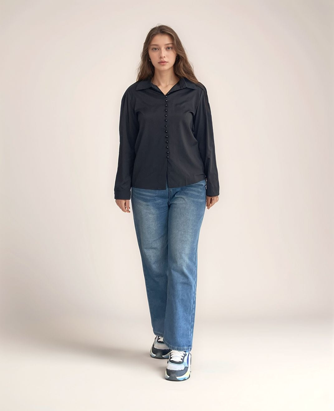 Black Satin Button Down Blouse