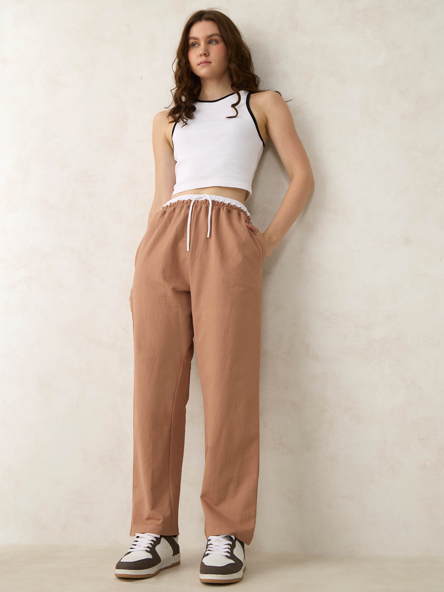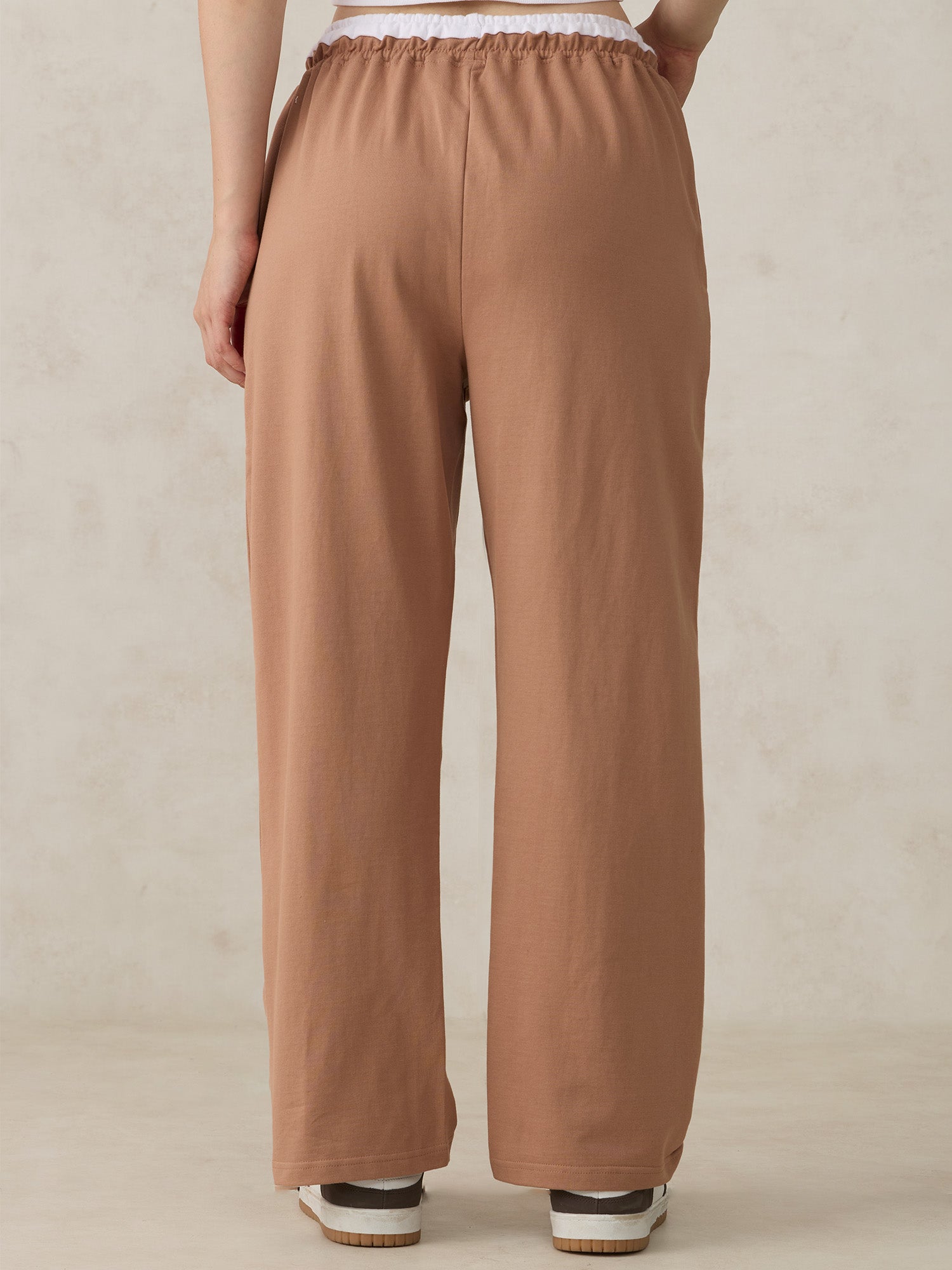 Brown Dual Toned Waistband Sweatpants