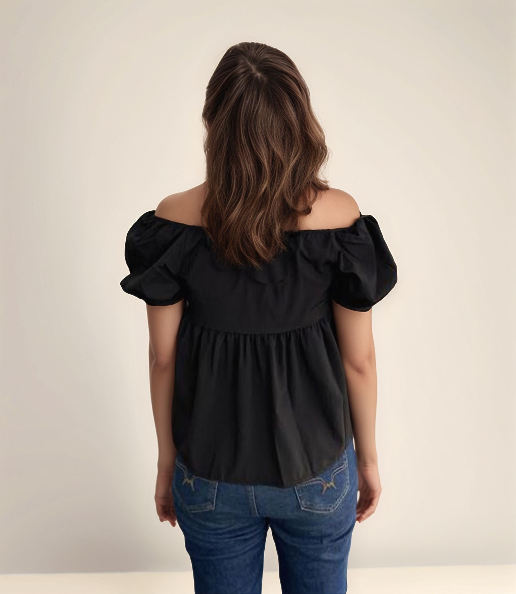 Black Puff Sleeve Peplum Top