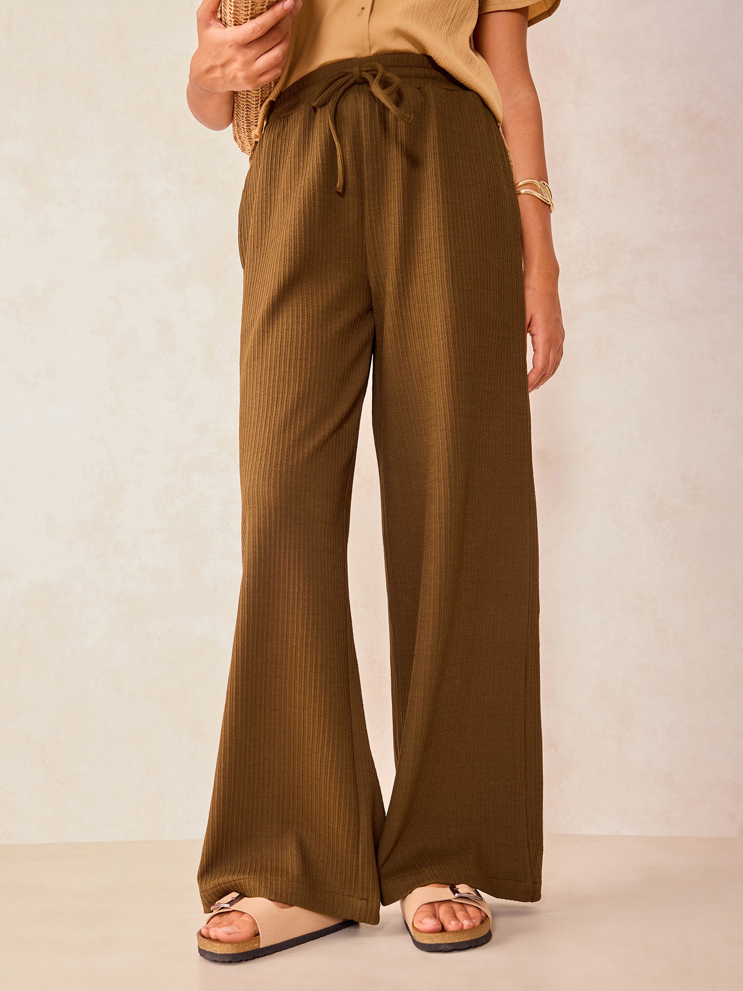 Olive High Waisted Wide Leg Trousers