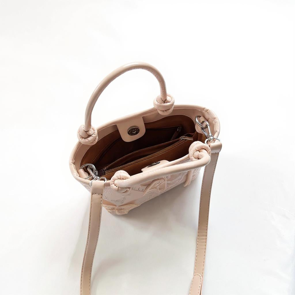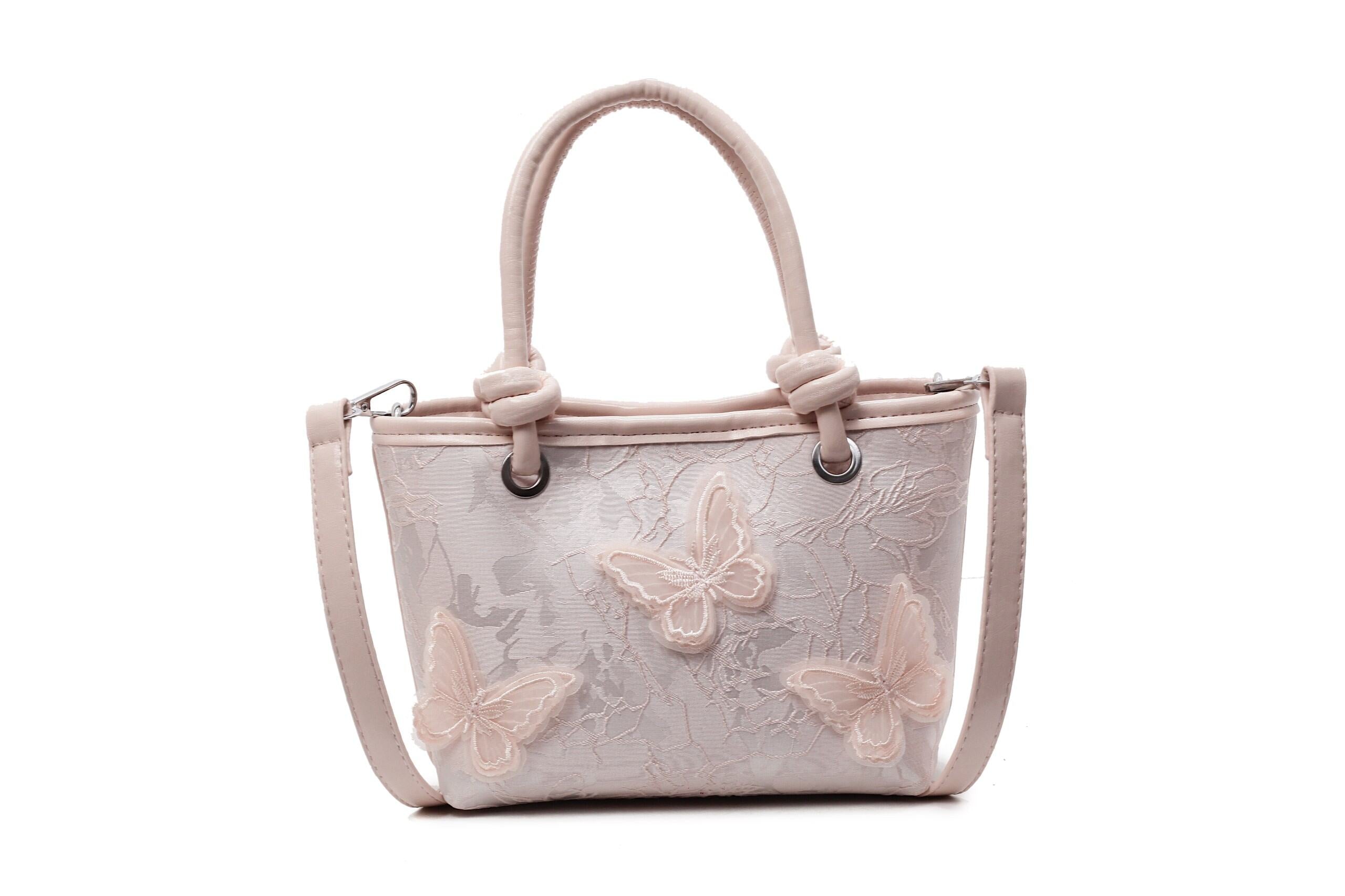 Pink Butterfly Embossed Hand Bag