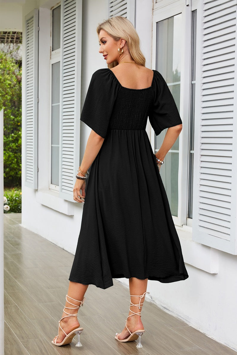 This isn’t your basic midi. With a subtle flare and a flattering shape that brings the energy, it’s a match for last-minute invites and weekend escapes. Whether you're headed to a beach café or just running city errands in style, this one pulls it together. Its light movement and flattering neckline make it ideal for summer layering or one-and-done outfits. Ready to take up space in your vacation outfits lineup.