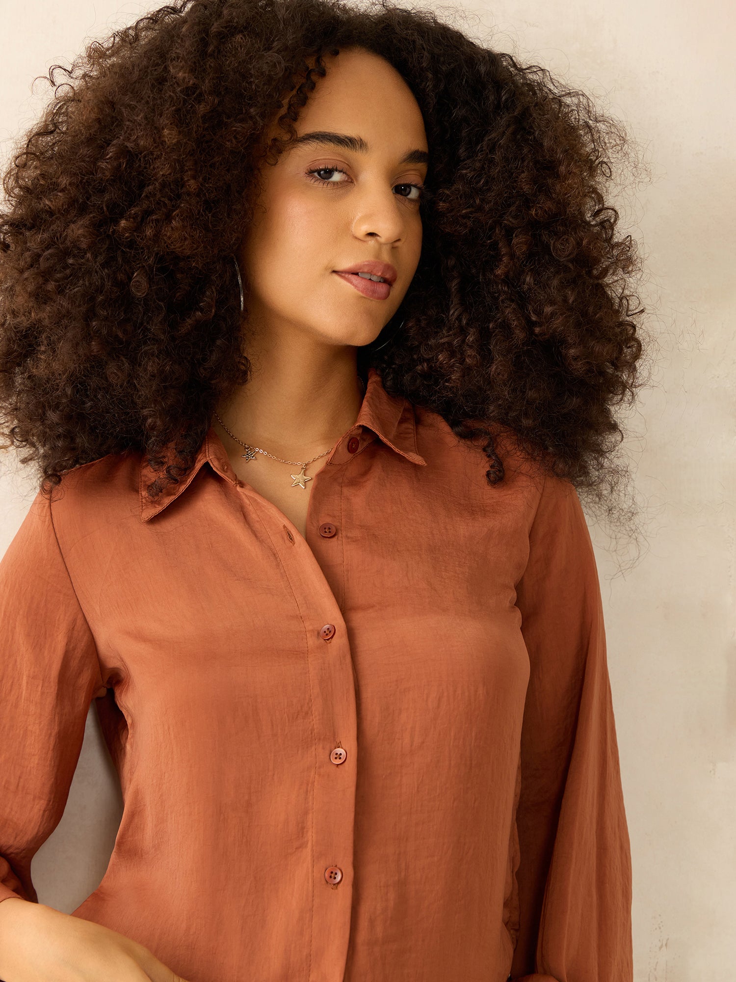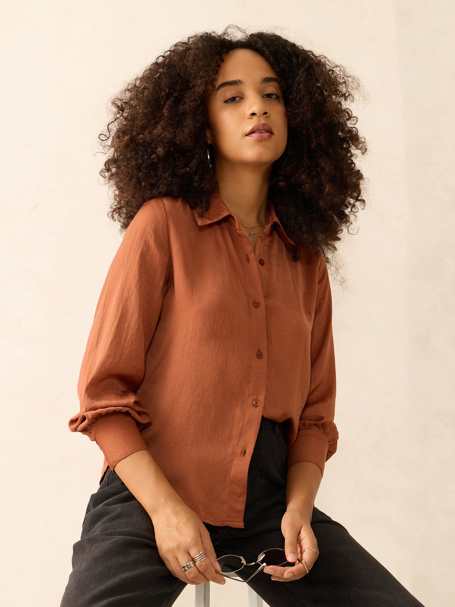 Brown Relaxed Fit Satin Shirt