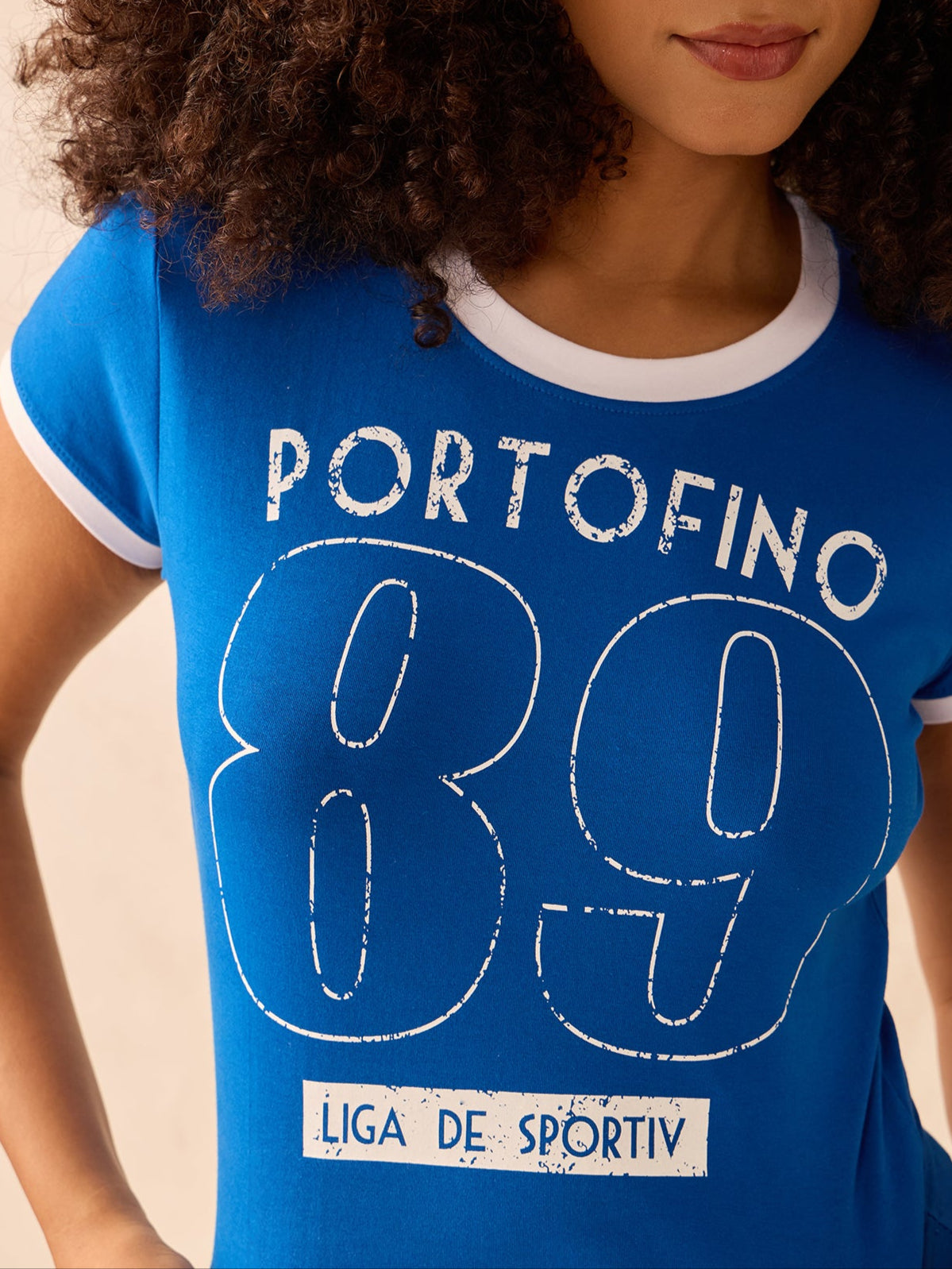 Blue Raglan Cropped Top With Graphic Print