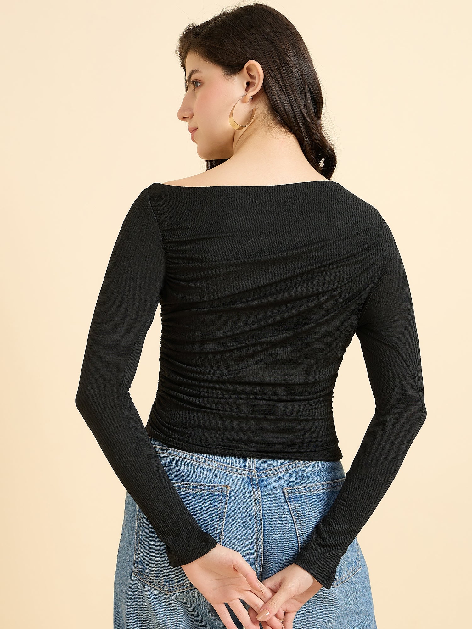 Built for party wear days when comfort and style go hand-in-hand. The Black Off-Shoulder Criss Cross Detailing Top has a flattering neckline and just the right fit. It’s an essential that holds up through brunch, strolls, and late-night detours. One top, all plans.