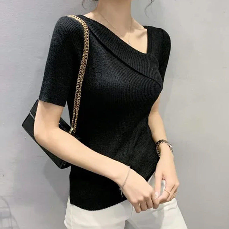 Black Assymetric Neck Top