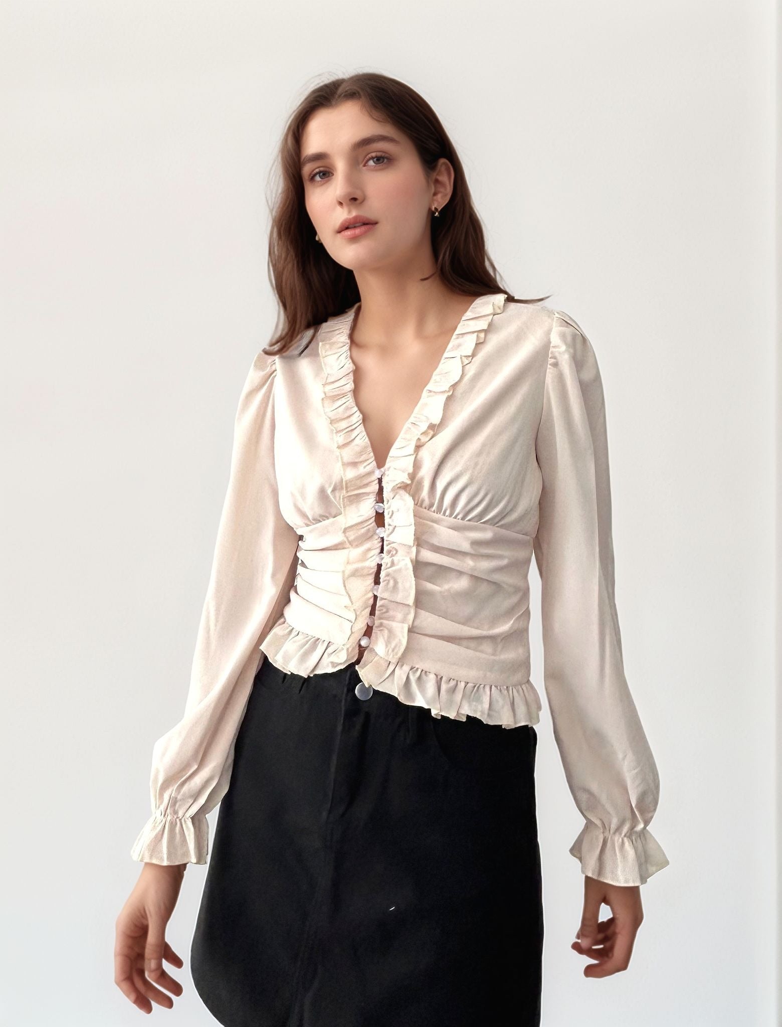 Looking for something that just works? The Off White Criss Cross Ruffle Top is the one. White shades bring the vibe, and the shape offers a clean shape for max mix-and-match potential.
