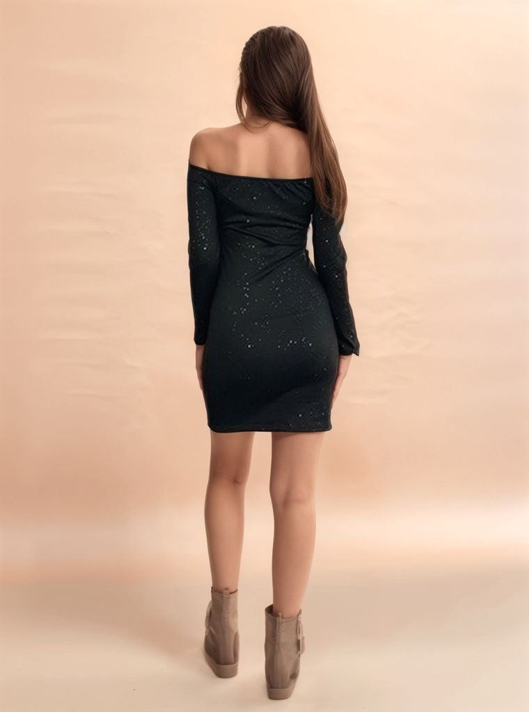 Shine bright at your next event with the Black Off-Shoulder Glittery Dress from Outzidr. This eye-catching party wear features a flattering off-shoulder neckline and a subtle glittery finish that adds a touch of glamour to your look. Perfect for any celebration or night out, it exudes confidence and elegance while ensuring you stand out. Pair with your favorite heels for a complete ensemble that dazzles all night long.