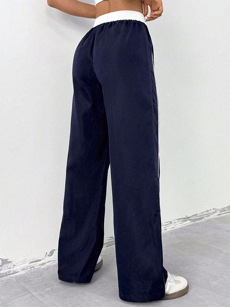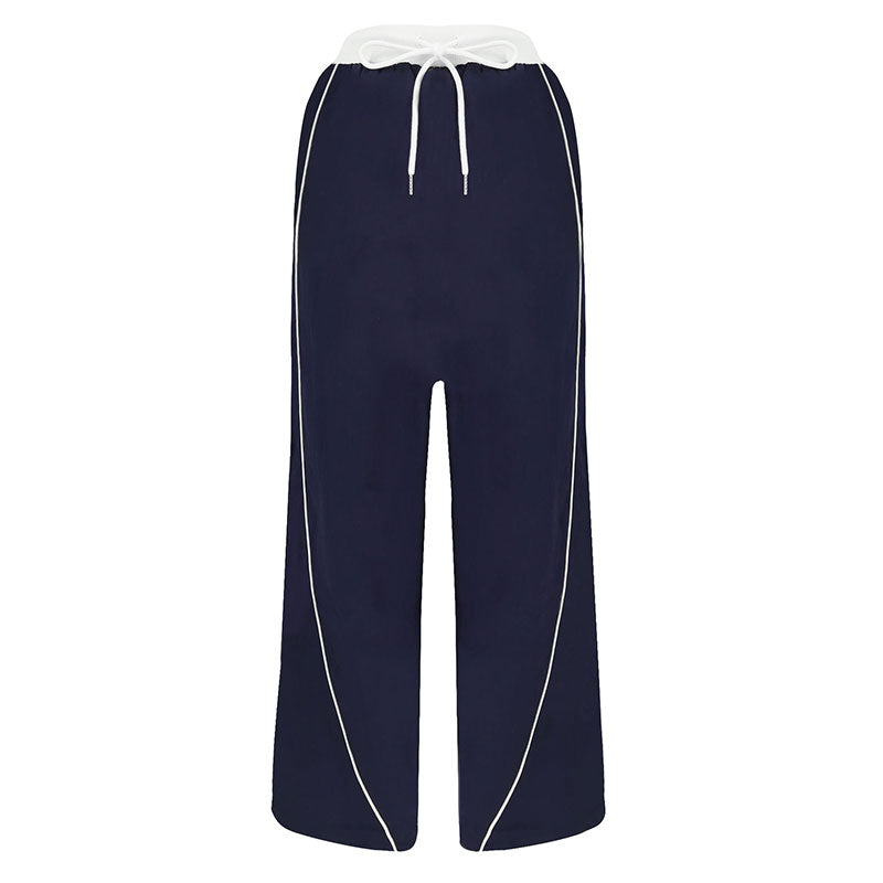 Navy Blue Wide Leg Solid Elasticated Joggers