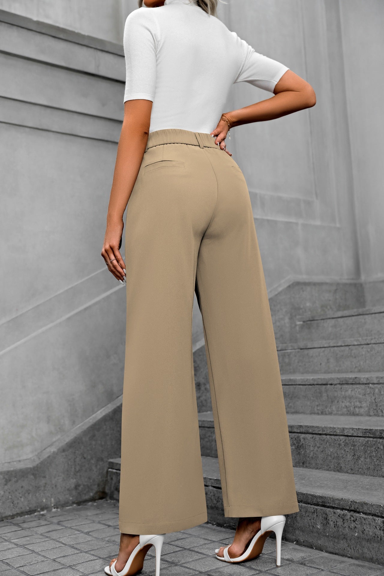 Pull on Khaki Waist Band Pleated Straight Fit Pants when you want to look put-together and still feel laid-back. This one's built for street wear scenes. Get dressed, get out.