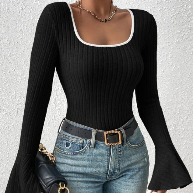 A go-to for Gen Z girls who do the most with the least. The Black Flat Knit Top With Bell Sleeves is designed for street wear days when you want to feel styled without trying. It’s cute, compact, and completely in rotation for whatever’s next.