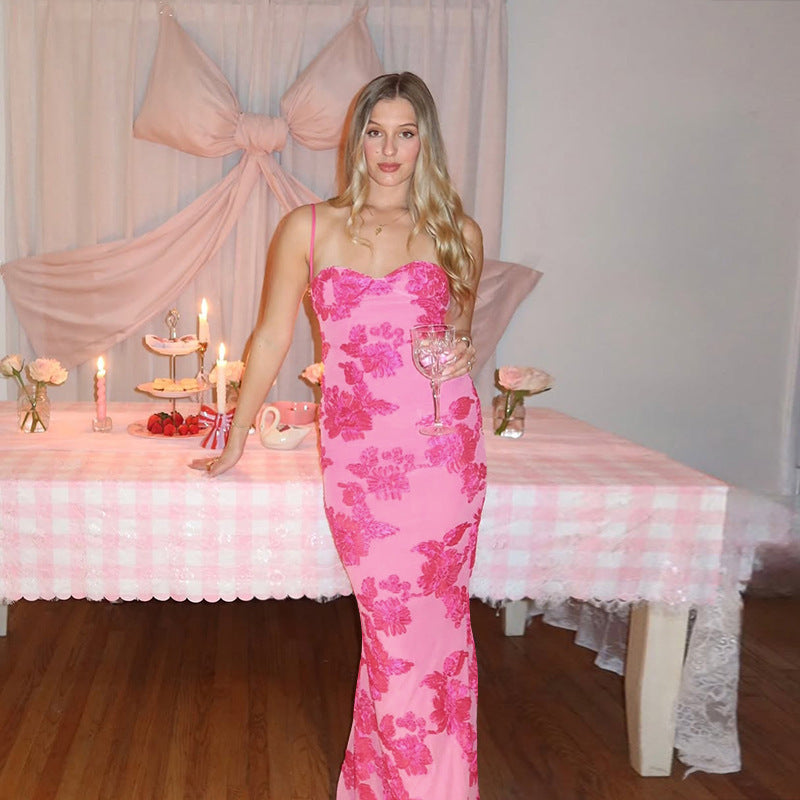 Pink Off Shoulder Floral Print Maxi Dress