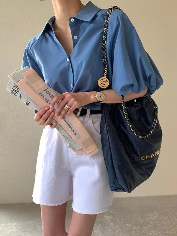 Heading out? The Blue Bubble Sleeve Shirt has your back. The blue shade gives it a standout look, and its easy form makes it ideal for everything from casual hangs to chill parties. Pair with your go-to kicks and you're good to go.