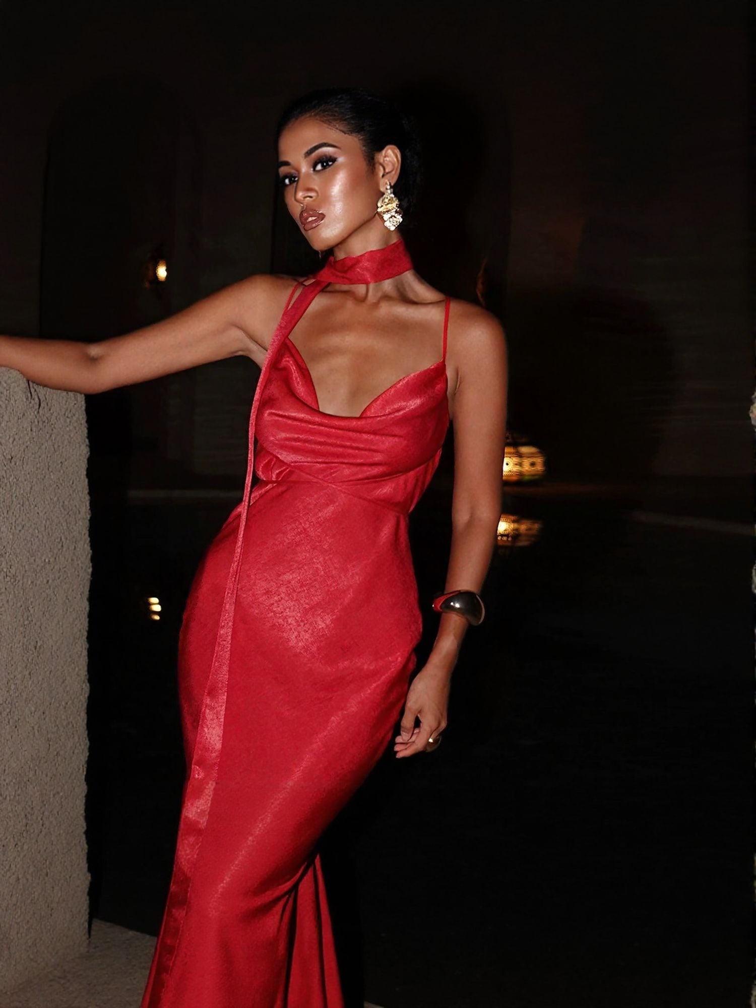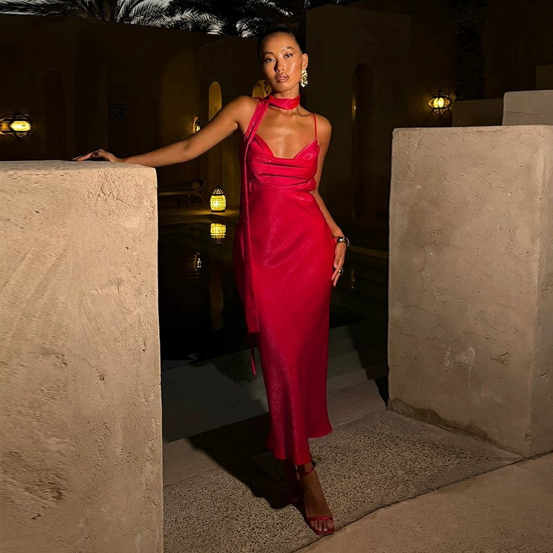 Red Strappy Midi Dress