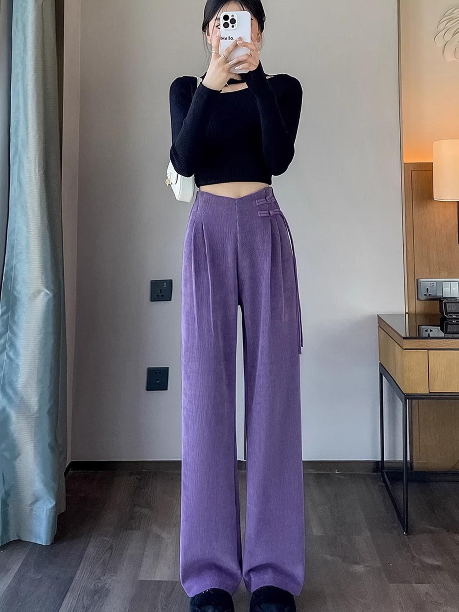 Purple Knotted Waist Korean Pants offer a chic and comfortable fit, perfect for casual wear. Featuring a stylish knotted waist and tailored design, they are a must-have in every woman's wardrobe. Ideal for everyday outings or relaxed weekends, these trousers combine trendiness with comfort. A best-seller in bottom wear, they are a versatile addition to your collection. Perfect for those who love Korean fashion and seek effortless style.