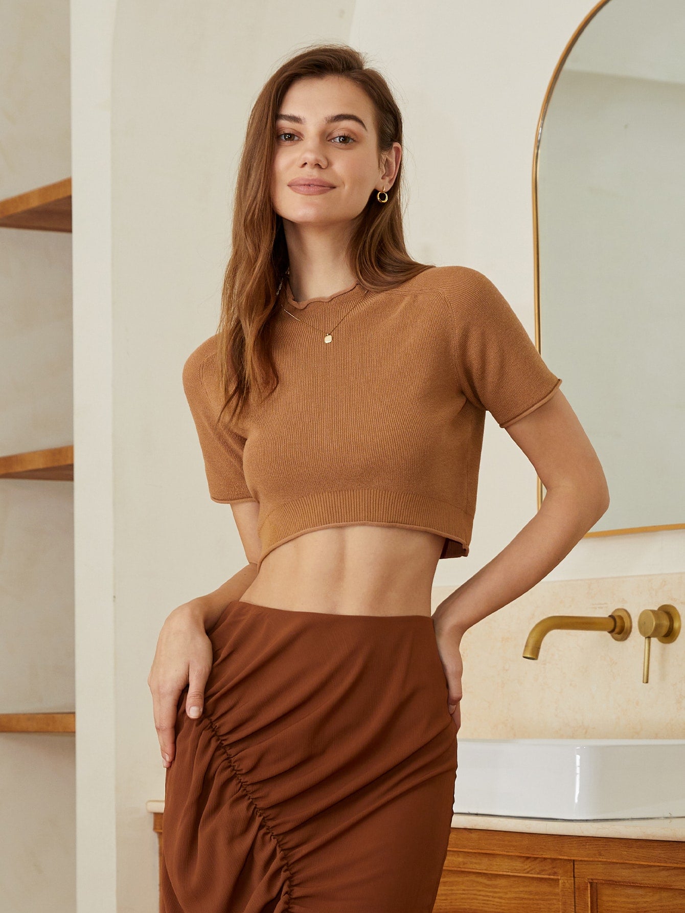 Looking for a Cropped Brown Top? Your search ends here! Discover our new brown casual wear, including knit tops perfect for top wear. Made from comfortable polyester, this cropped top is stylish and ideal for everyday looks.