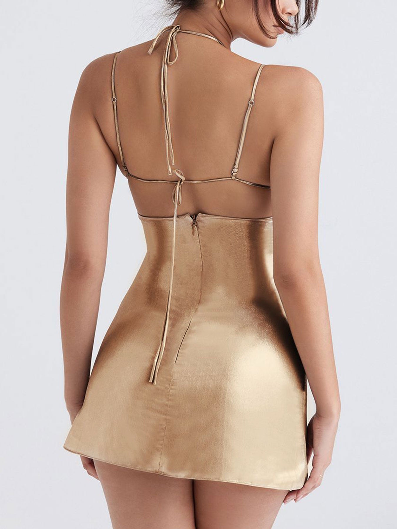 Simple, stylish, and made for going out,Gold Later Neck Mini Shimmer Dress checks all the boxes. The bodycon silhouette and easy design make it the party mini dress you’ll reach for again and again. Style it for party plans with ease, whether you're heading to town or a friend’s party.