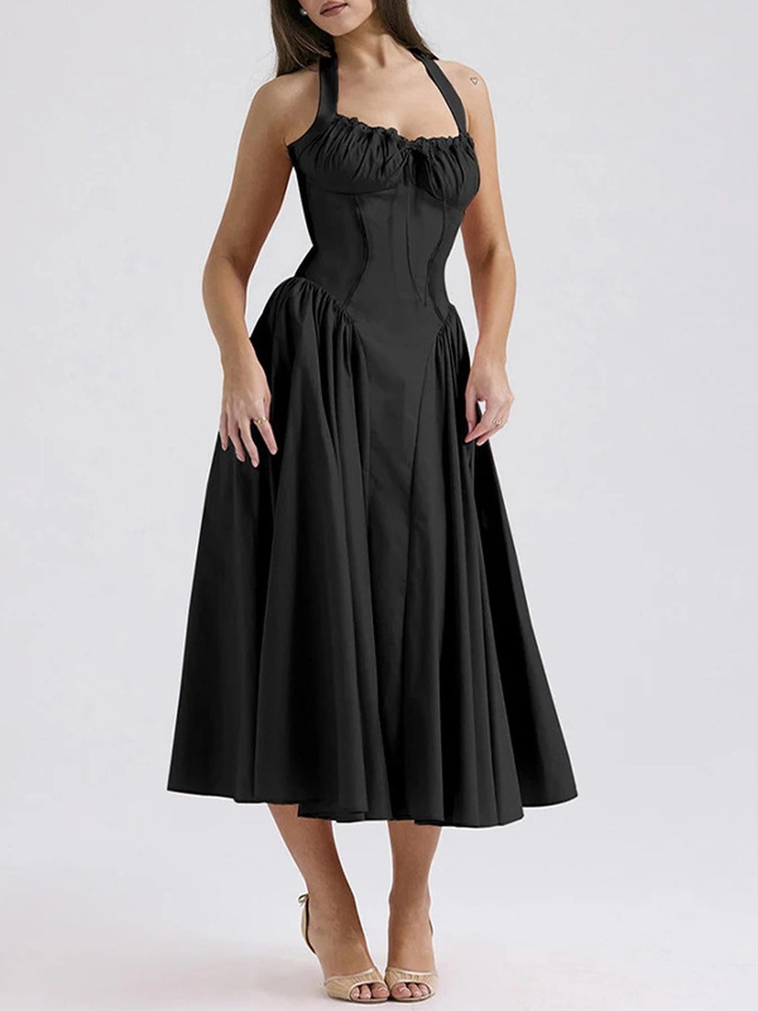 Step out in style with this Black Corset Dress, designed to highlight your curves. The flattering corset detail adds a touch of sophistication to this Korean-inspired midi dress, making it perfect for party wear or formal occasions. Crafted for comfort and elegance, this women锟斤拷锟絪 dress offers a figure-hugging fit that enhances your silhouette. Make a bold statement wherever you go with this stunning piece.