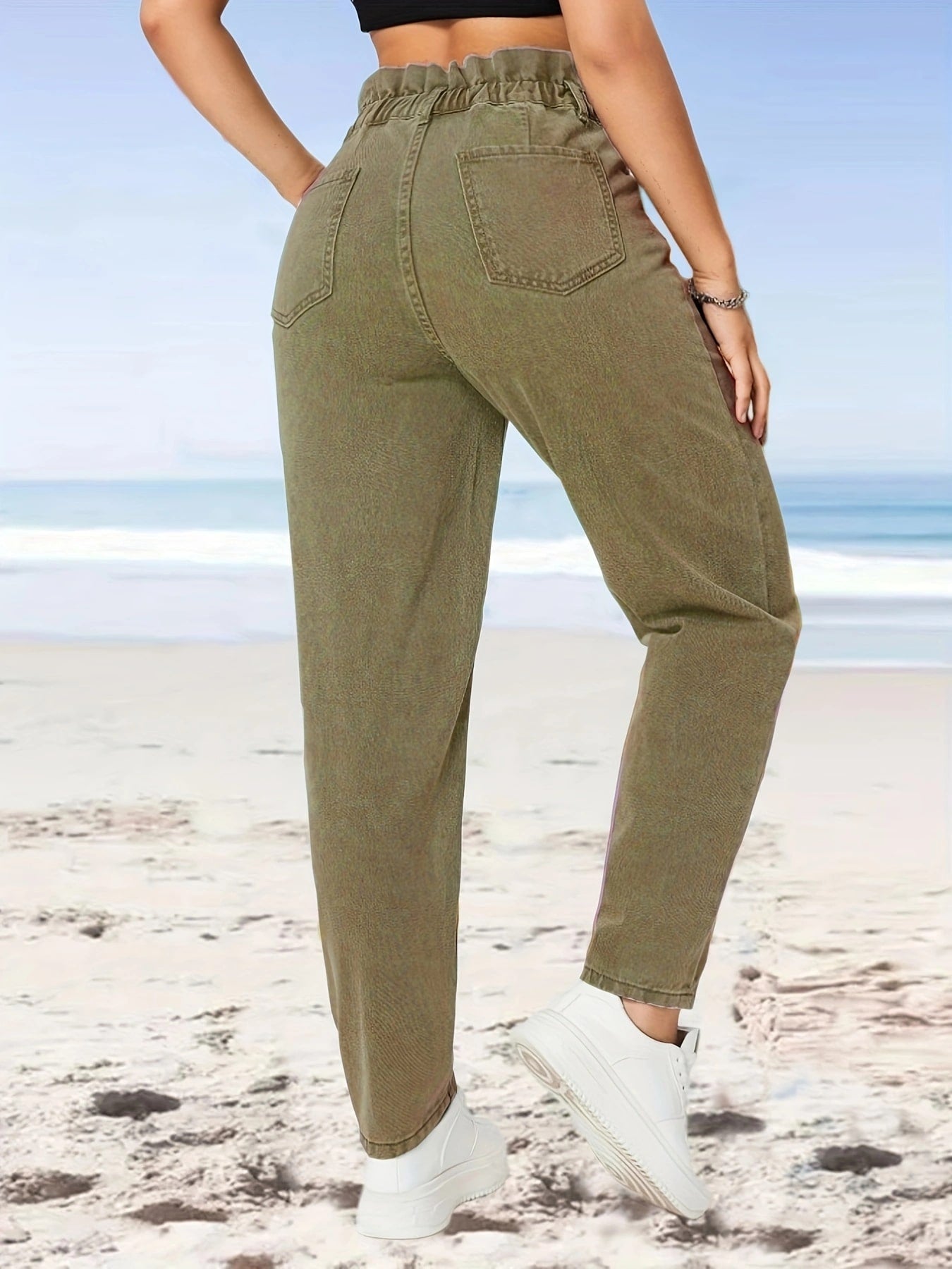Olive Paper Bag Waist Jeans