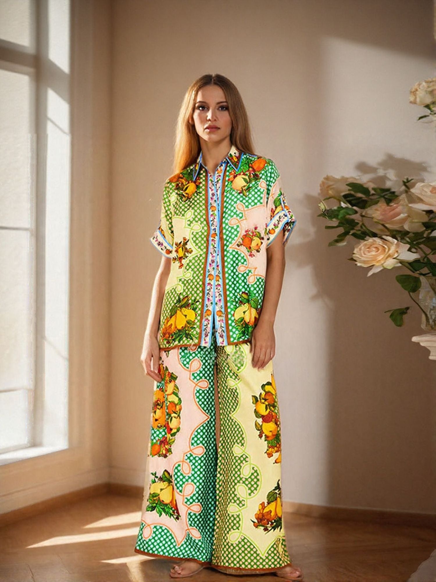 Green Abstract Print Shirt And Trouser Co-Ord Set