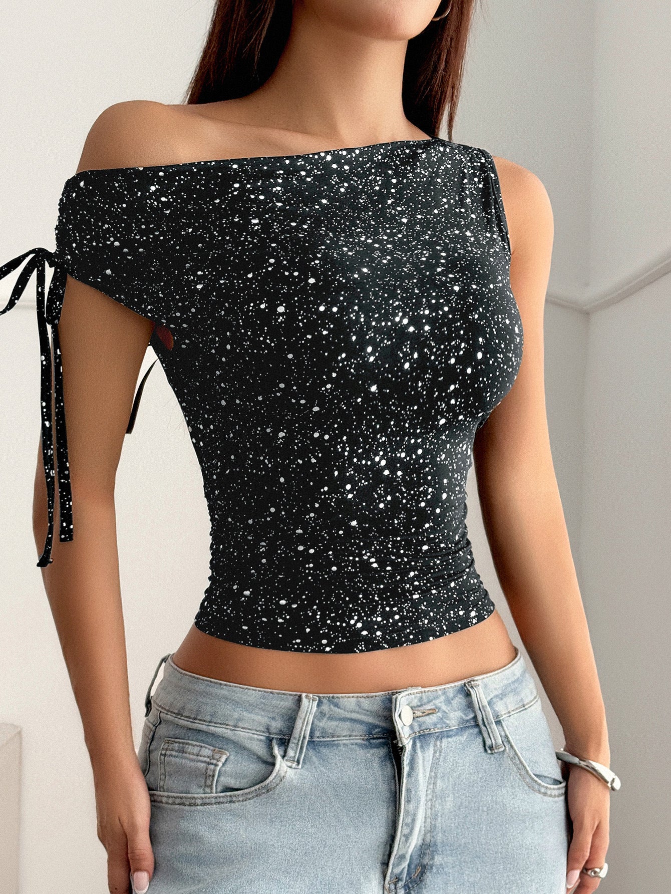 Make getting ready feel like a breeze with the Black Slim Shimmer One Shoulder Top. Perfect for party wear scenes and low-effort styling, it’s the kind of top you’ll keep coming back to. The design blends ease with a hint of edge,made for the girl who's always out the door. Get dressed, get out.