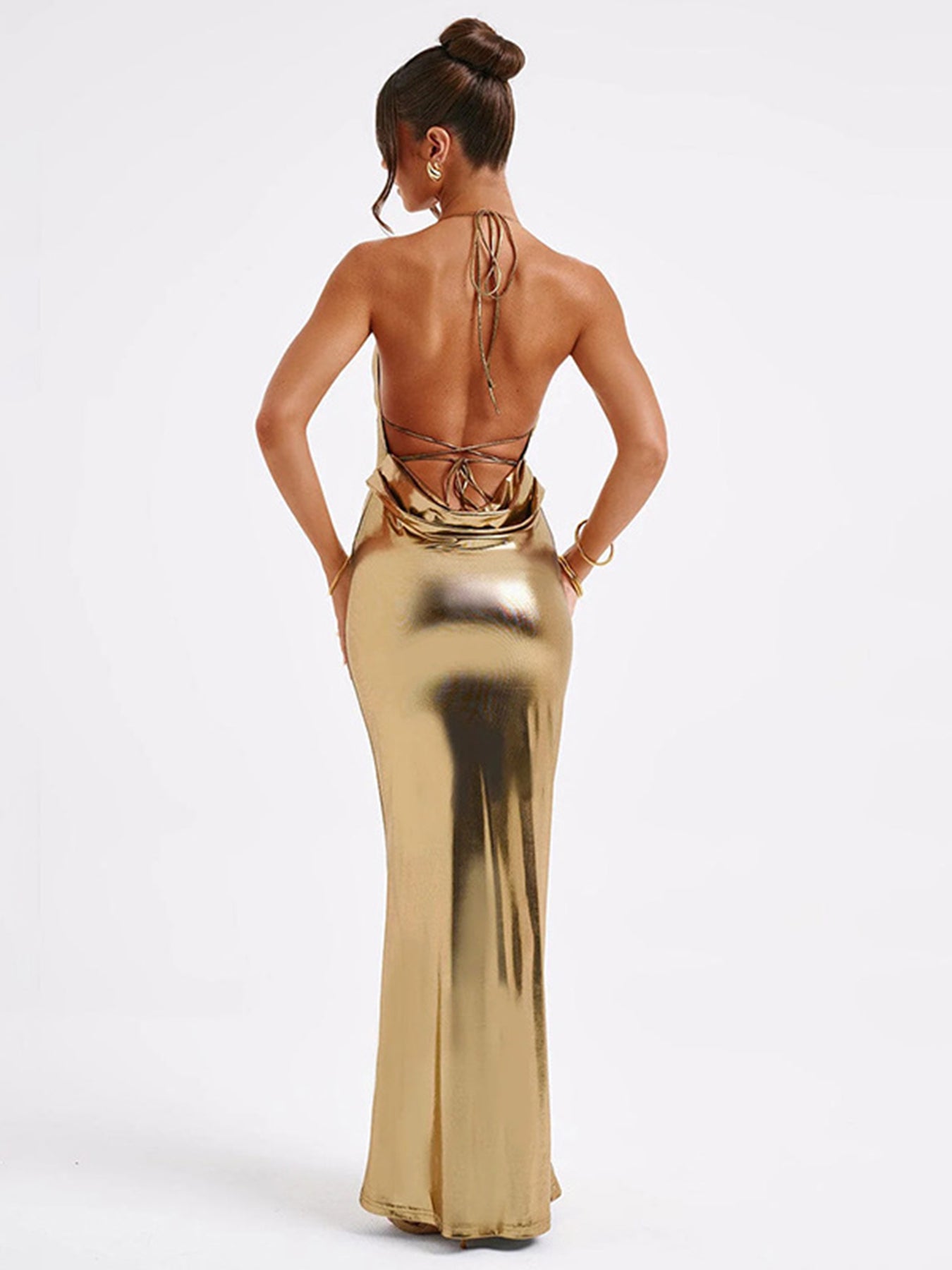 Gold Cowl Neck Low Back Slip Dress