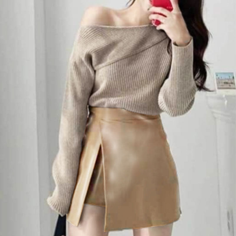 White Off Shoulder Full Sleeves Fitted Top