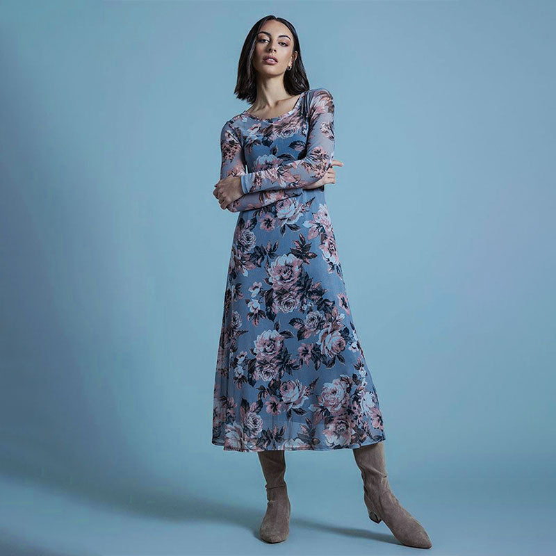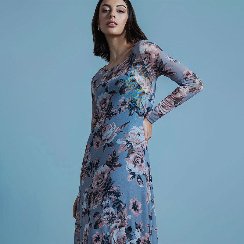 Grey Floral Print Maxi Dress