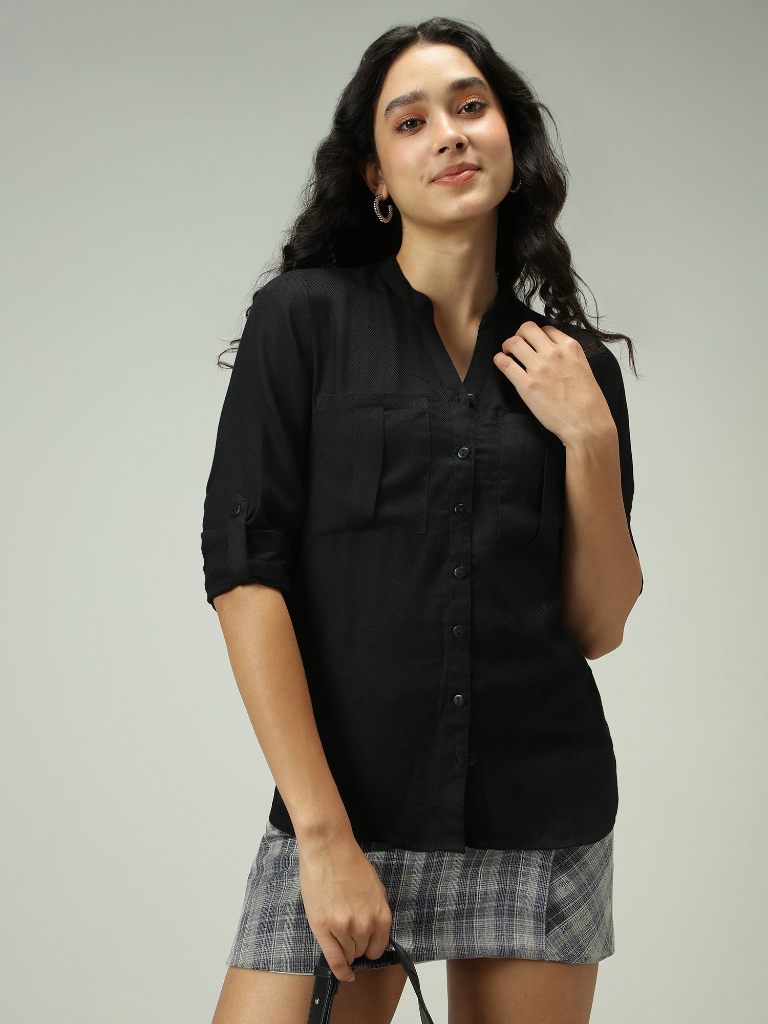 The Black Solid V Neck Shirt is perfect for those on-the-go days that need a little style boost. Black adds that spark, while the street wear shape keeps things minimal and versatile. Moves with you, effortlessly.