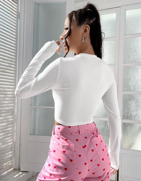 Make getting ready feel like a breeze with the White Heart Cutout Fitted Top. Perfect for vacay wear scenes and low-effort styling, it’s the kind of top you’ll keep coming back to. The design blends ease with a hint of edge,made for the girl who's always out the door. Get dressed, get out.