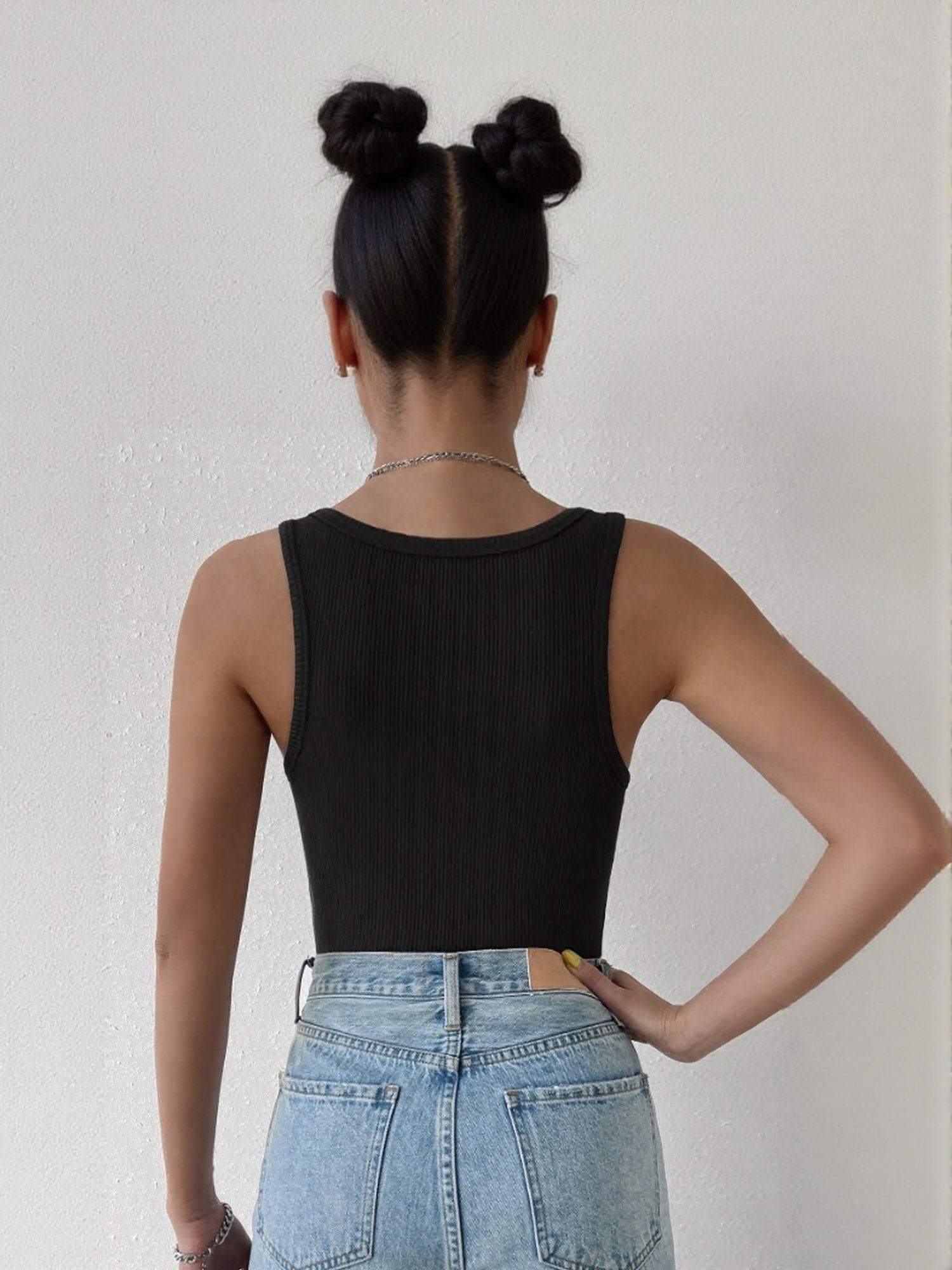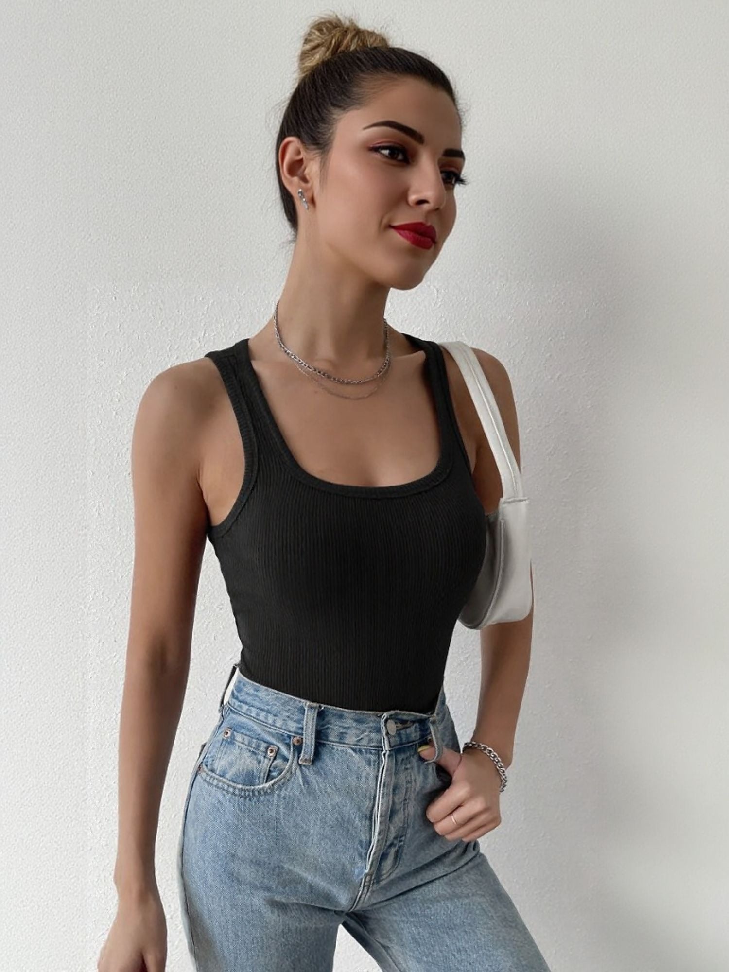 Not sure what to wear for your next Vacay Wear? This fitted camisole in black is the instant go-to. Clean, confident, and Gen Z-approved.