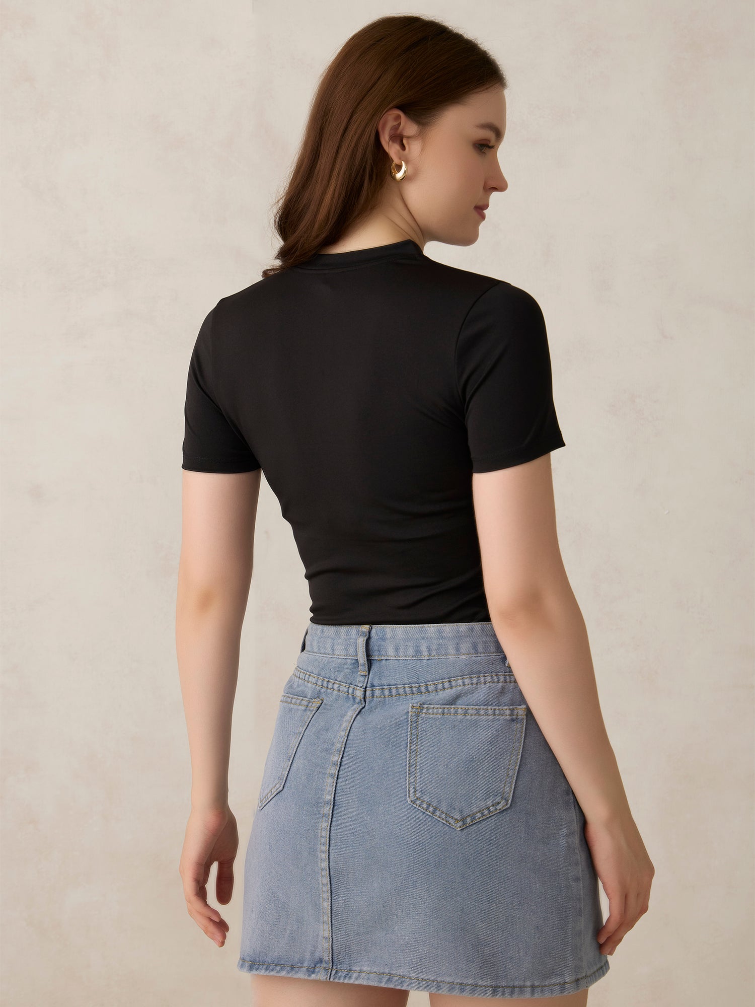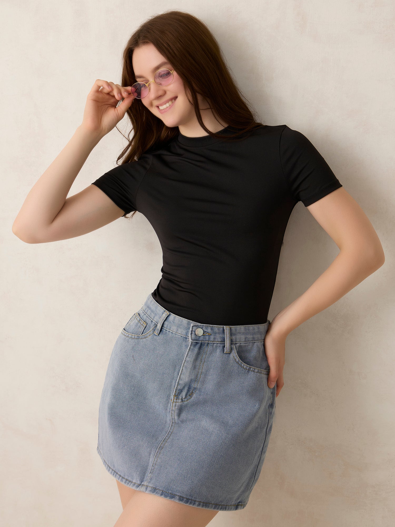 The Black Basic Solid Bodysuit isn’t just a street wear, it's your fashion fallback. Black brightens up your closet, and the classic cut means it pairs with almost everything.