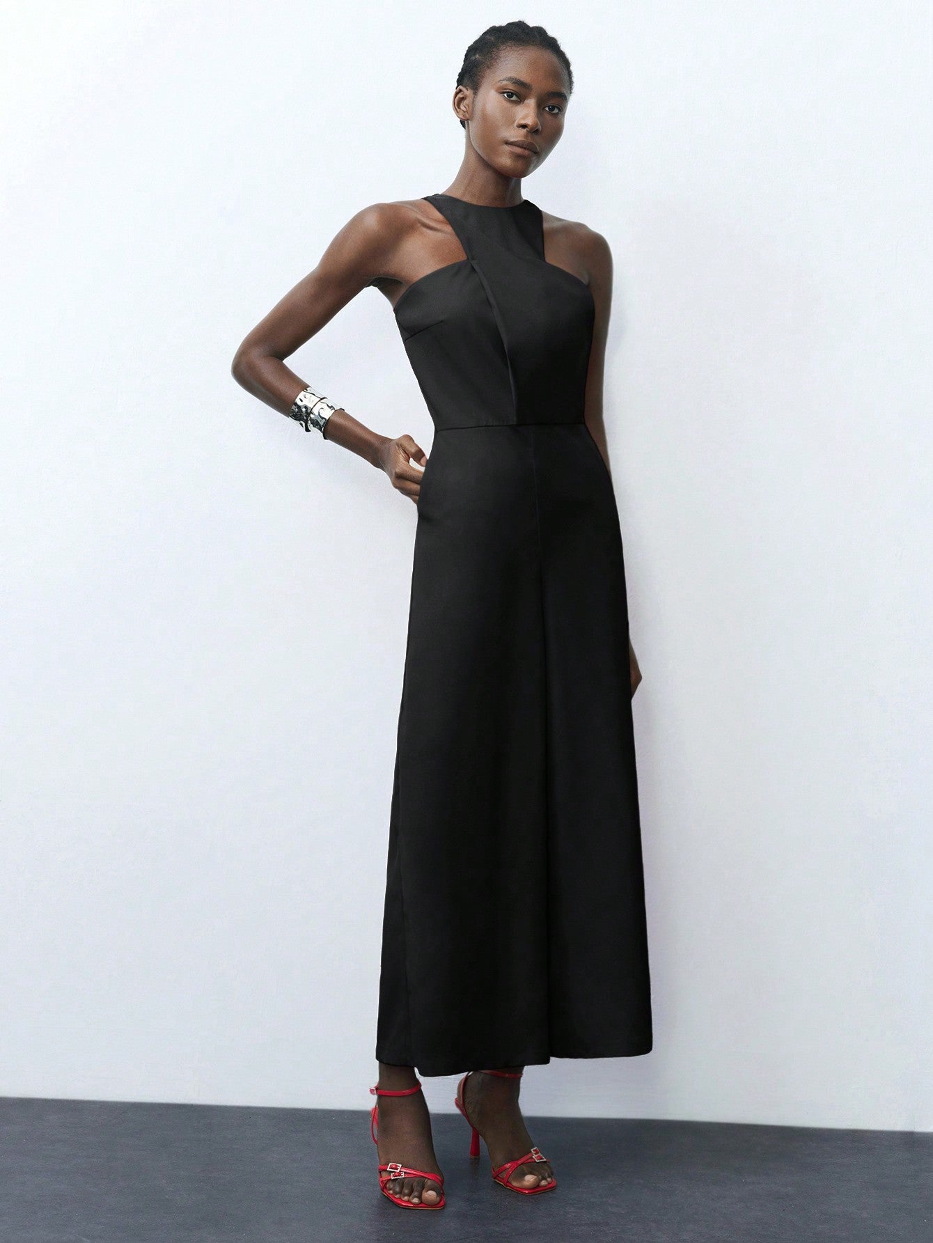 When the invite says extra, the Black Cropped Jumpsuit With Square Cut Armhole Detail. delivers. Straight-fit keeps it structured yet fun, made to move. Get dressed. Get out.
