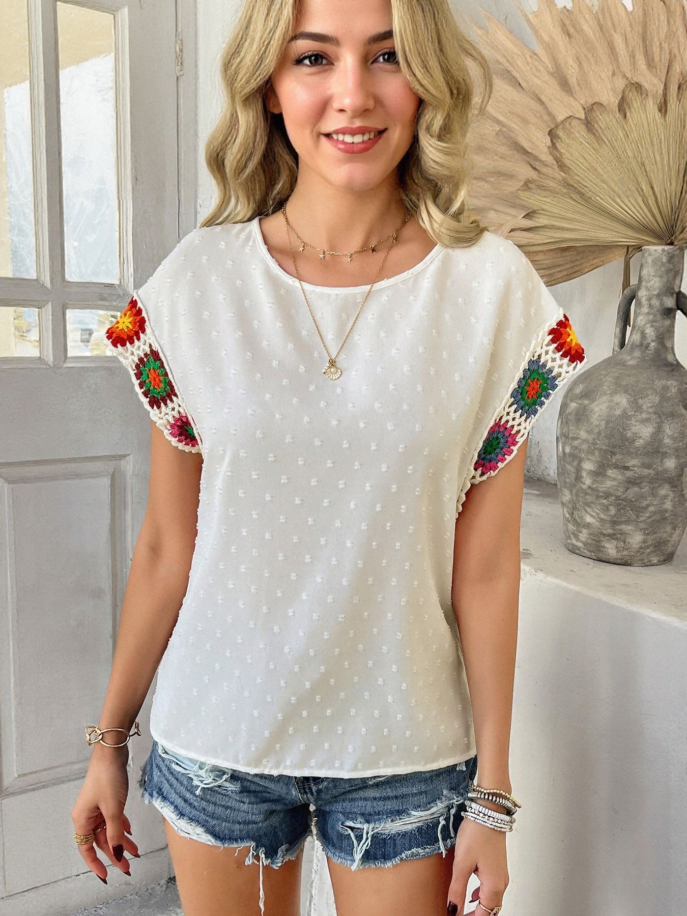 The White Solid Blouse With Crochet Sleeves is perfect for those on-the-go days that need a little style boost. White adds that spark, while the vacay wear shape keeps things minimal and versatile. Moves with you, effortlessly.