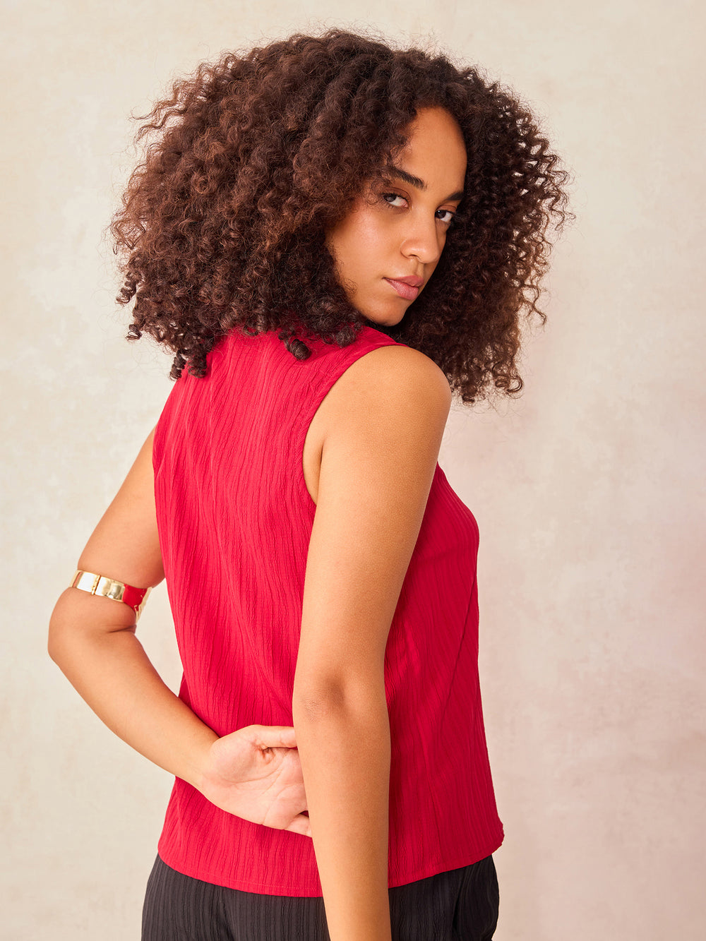 Looking for something that just works? The Multi Sleeveless Cropped Schiffli Shirt is the one. and the shape sits in a cropped silhouette for max mix-and-match potential.