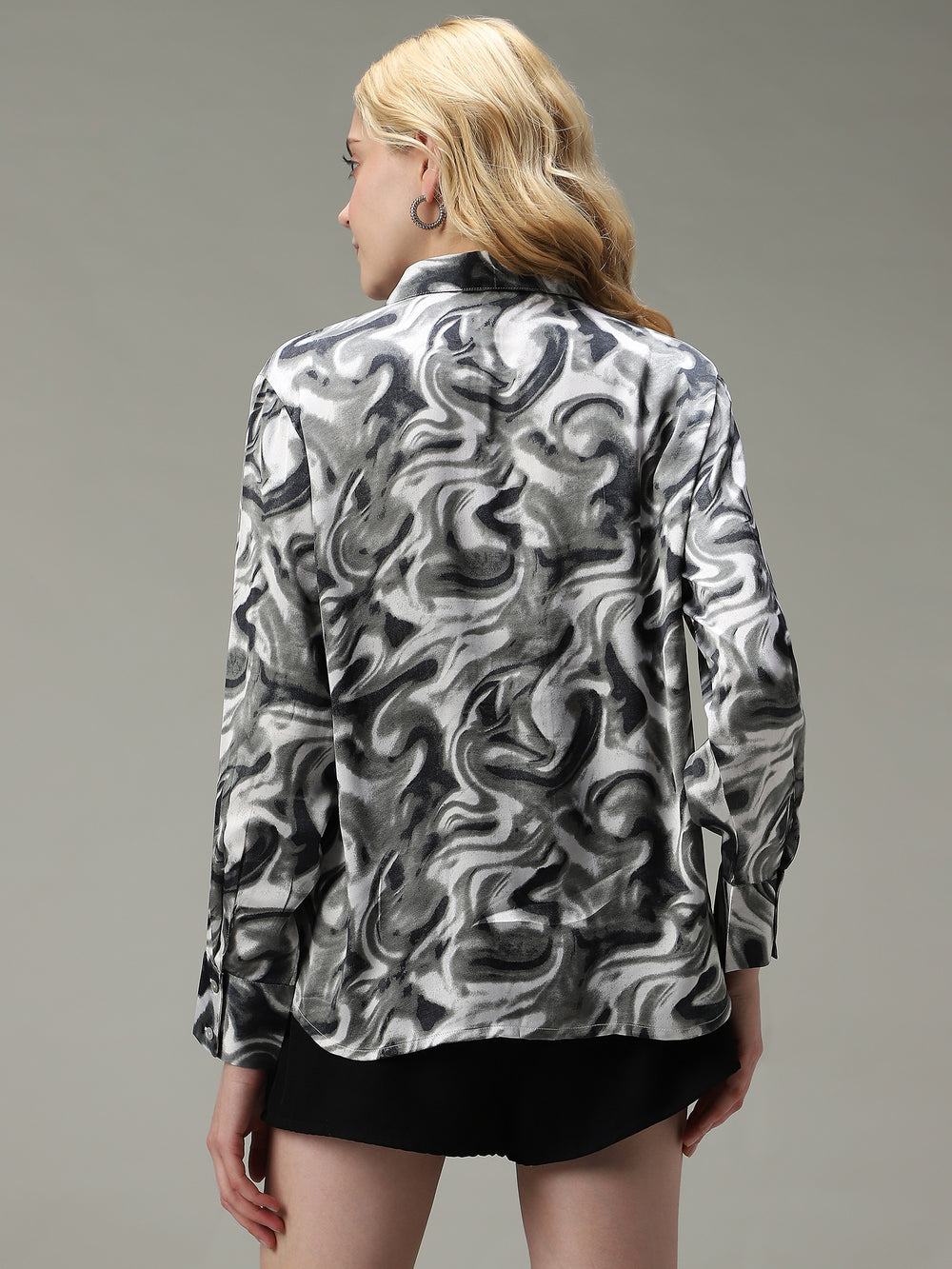 The Grey Printed Satin Shirt isn’t just a party wear, it's your fashion fallback. Grey brightens up your closet, and the classic cut means it pairs with almost everything.