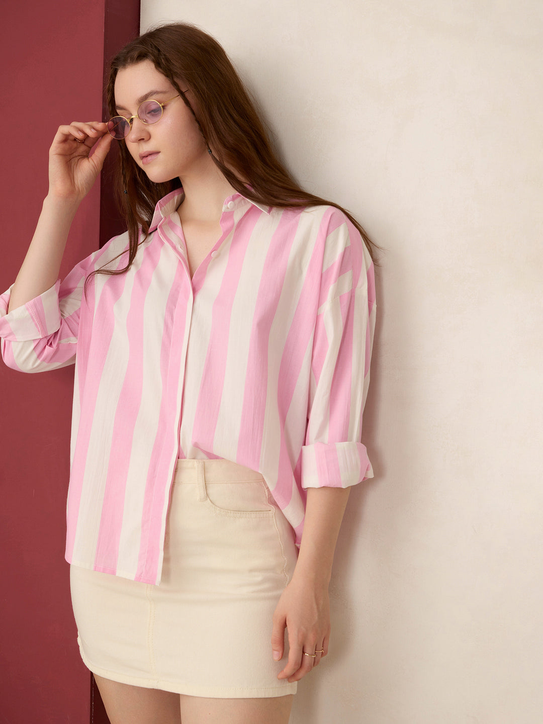 The Pink Striped Oversized Shirt is perfect for those on-the-go days that need a little style boost. Pink adds that spark, while the street wear shape keeps things minimal and versatile. A oversized fit that moves with you.