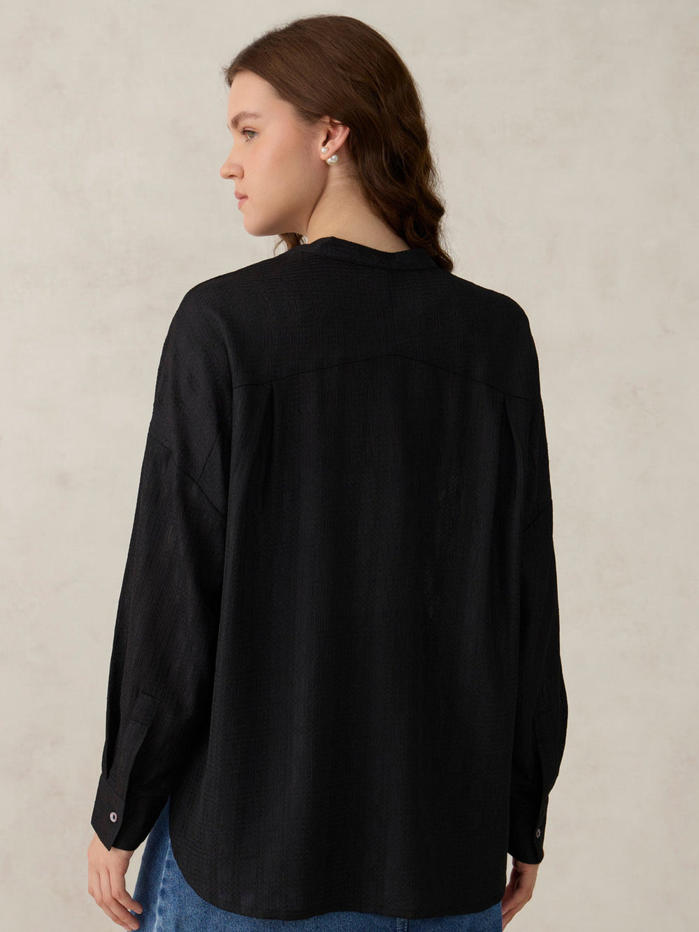 The Black Textured Solid Shirt is perfect for those on-the-go days that need a little style boost. Black adds that spark, while the street wear shape keeps things minimal and versatile. Moves with you, effortlessly.