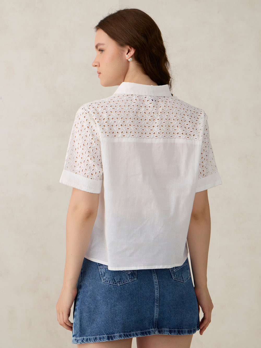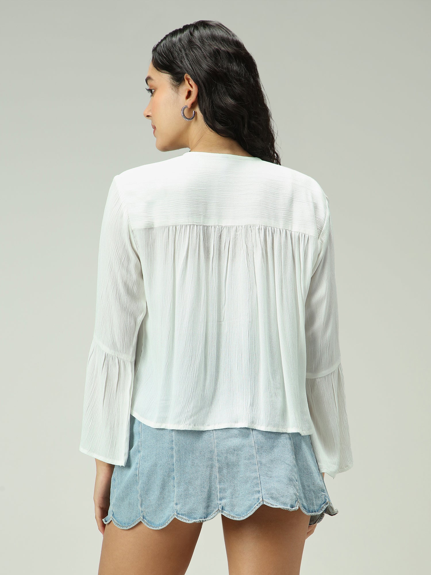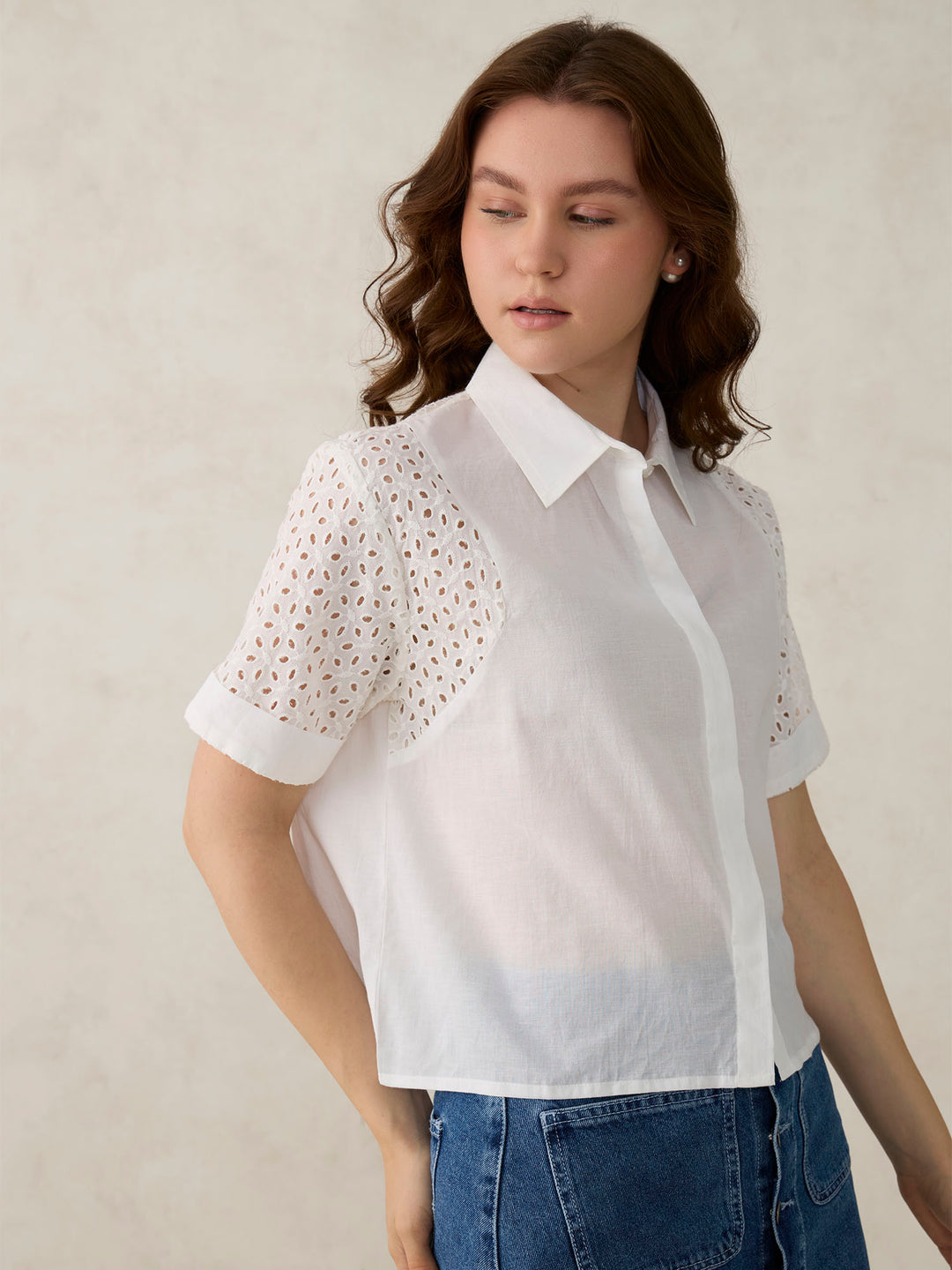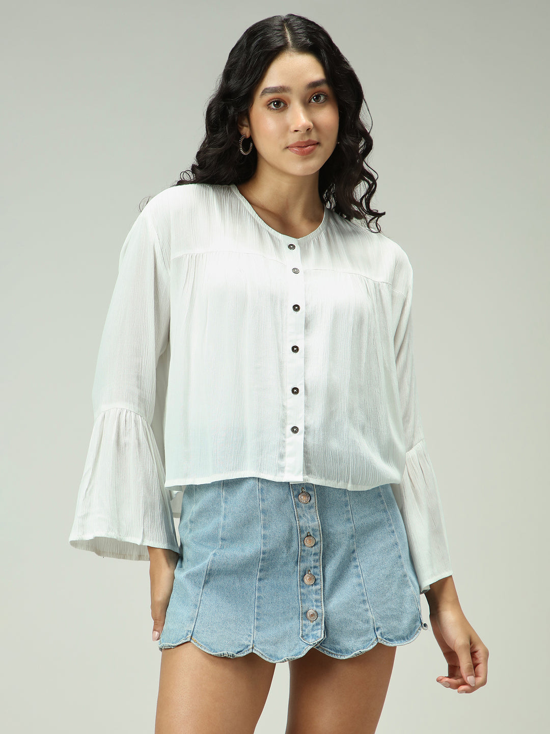The White Schifley Sleeve Cropped Shirt isn’t just a casual wear, it's your fashion fallback. White brightens up your closet, and the cropped cut means it pairs with almost everything.