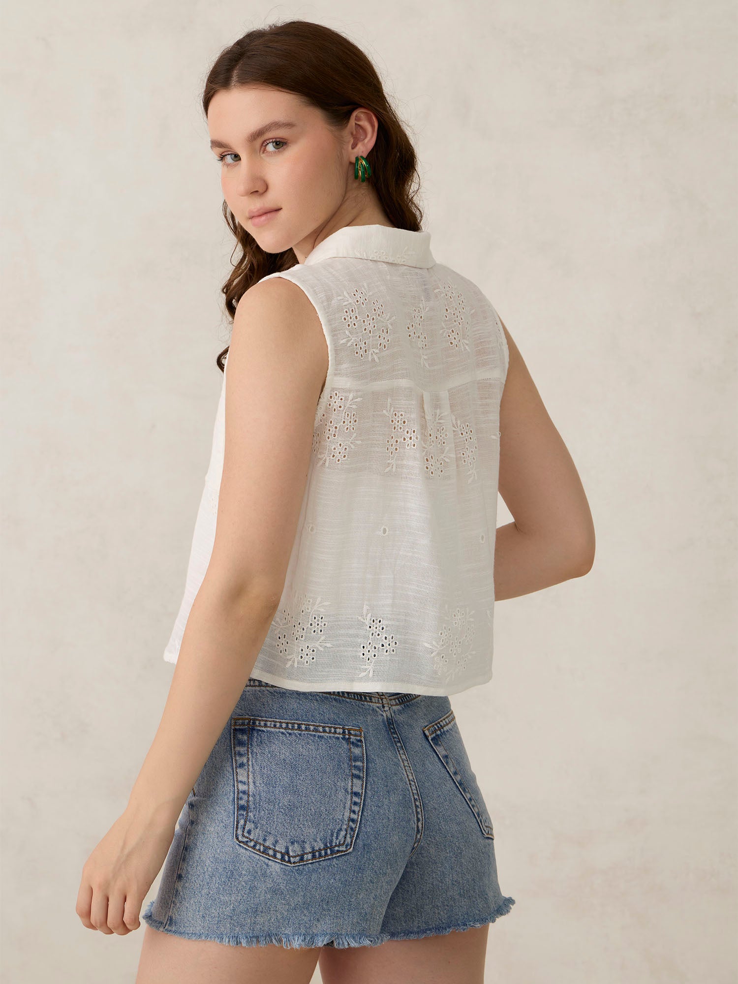 The White Sleeveless Boxy Shirt is built for real plans and real movement. Bold in white, this casual wear transitions easily from daywear to after-dark fits. Finished with attention to ease and flow.