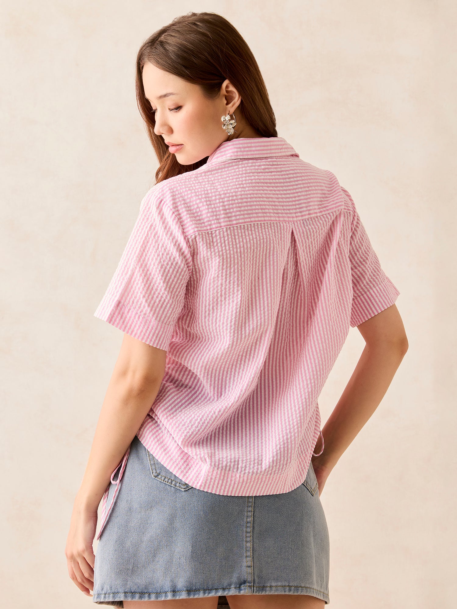 Slip into the Pink Boxy Shirt With Side Ruching Detail for a laid-back day that still looks styled. Whether you're heading out or staying in, this casual wear is built for that Gen Z mix of comfort and edge. The pink color makes it pop, and the relaxed fit means it feels as good as it looks.